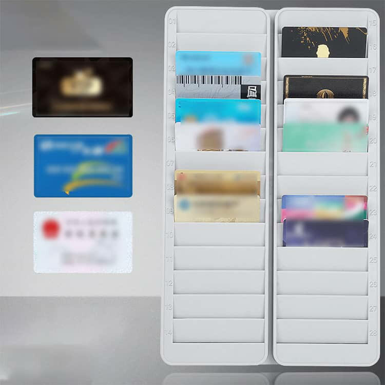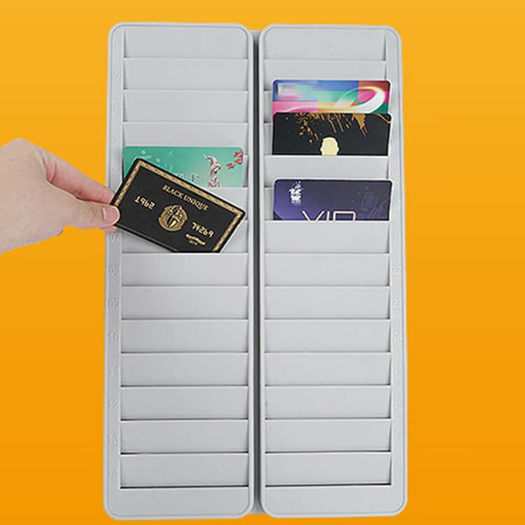 28枚収納可能 タイムカードラック IC IDカードホルダー 壁掛け 立て掛け 穴あけ不要 取り付け簡単 カード収納 大容量 タイムカード用ラック 28人用 28名用 収納 対応 カードキー 28枚