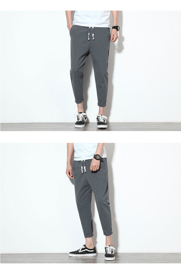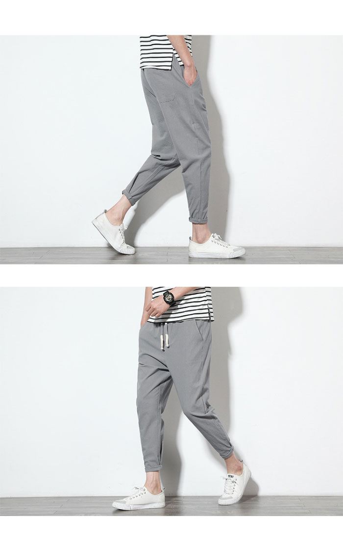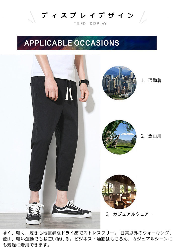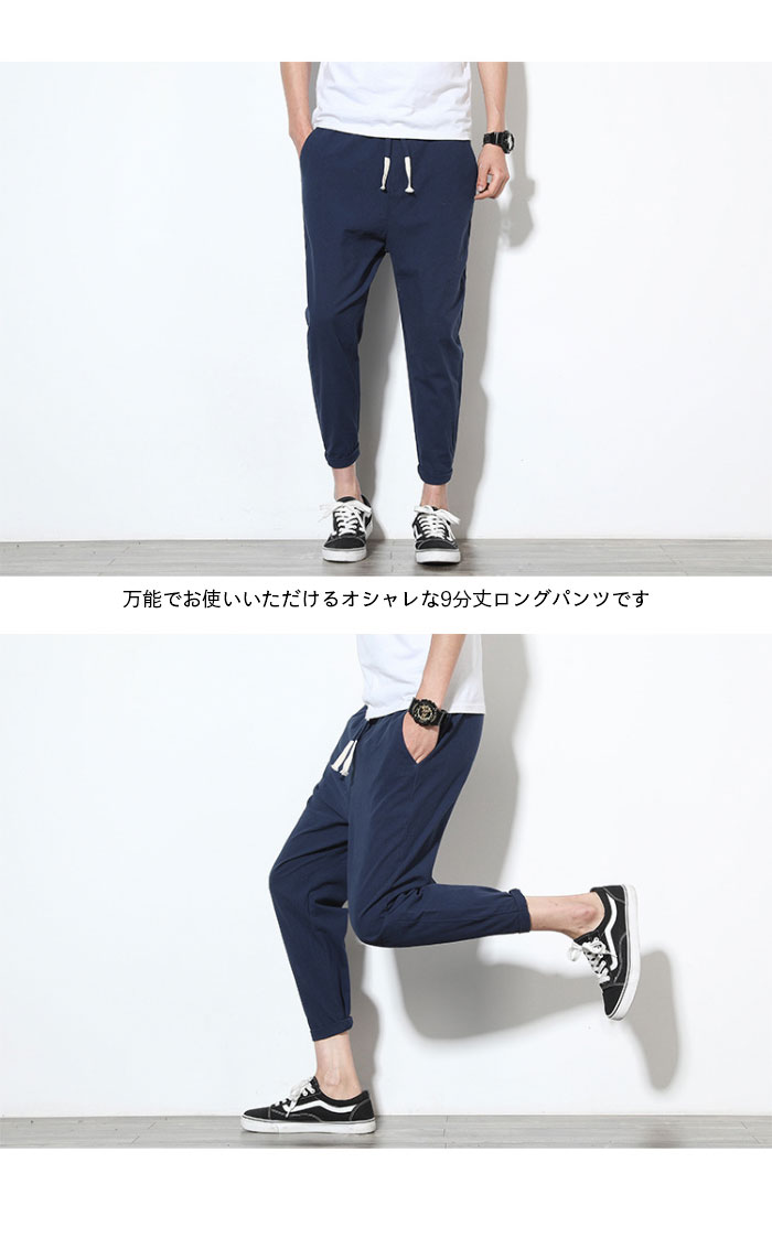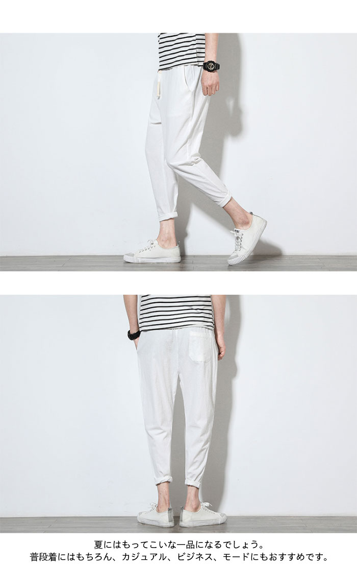 サルエルパンツ ズボン メンズ 9分丈 無地 リネンパンツ 綿麻パンツ ボトムス 涼しい アンクルパンツ おしゃれ ロングパンツ 夏服 メンズファッション パンツコーデ ゆったり 調整紐