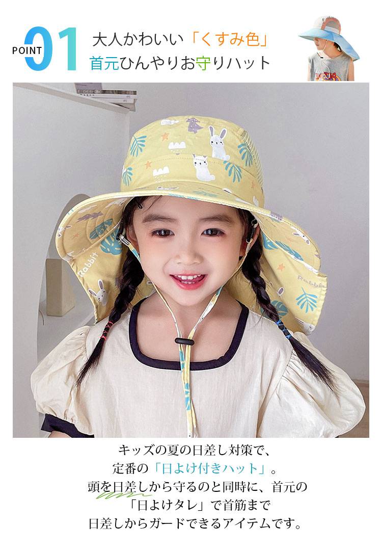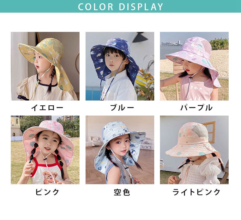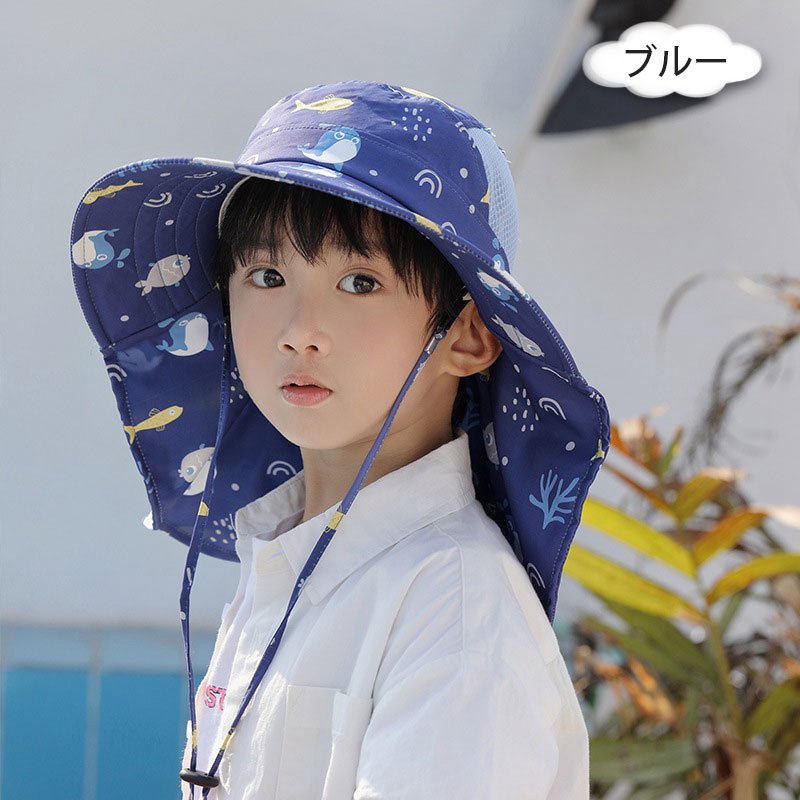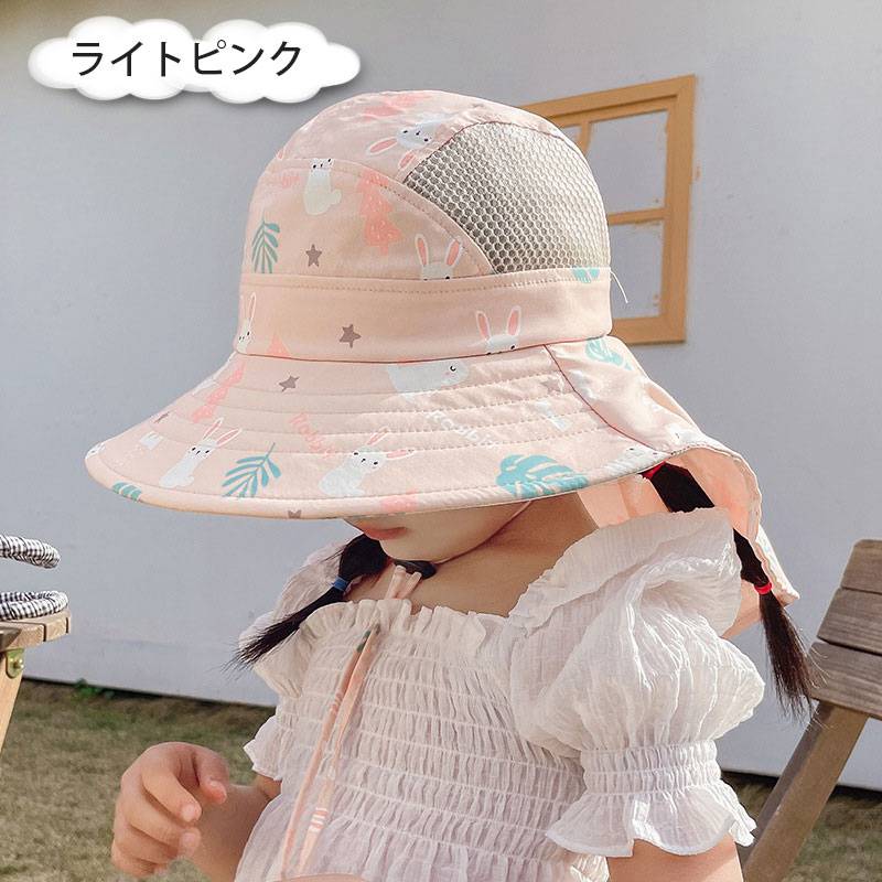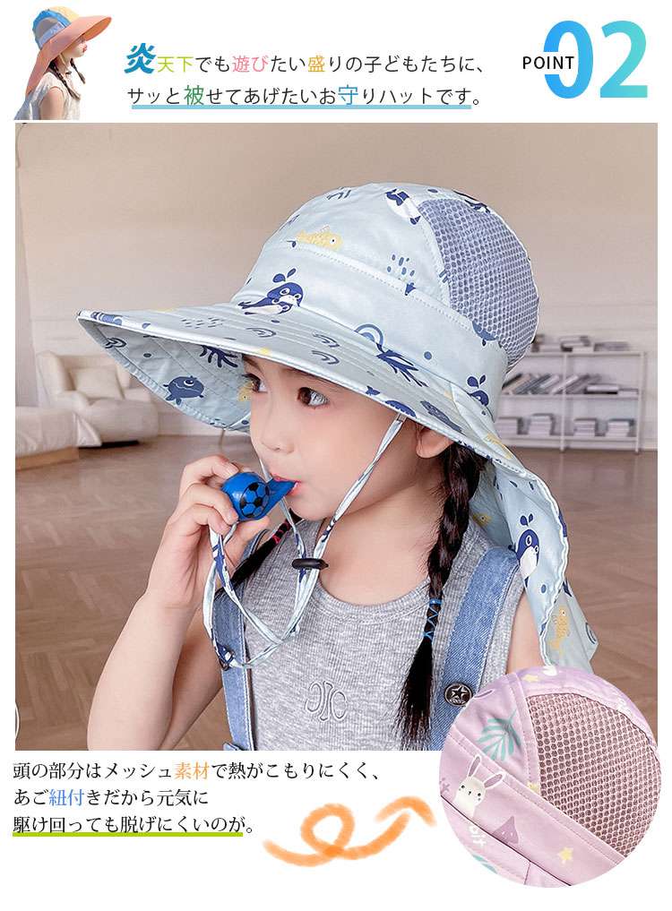 帽子 キッズ ゴム紐 日よけ 子供 春 夏 顎紐付き uvカット 52cm-54cm メッシュ ハット ベビー 夏用 女の子 男の子 海 小学生 バケットハット 保育園 たれ 日除け ひも つば付き