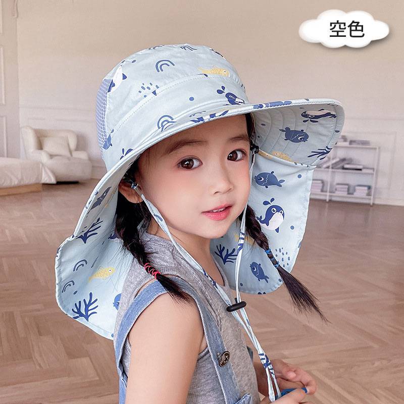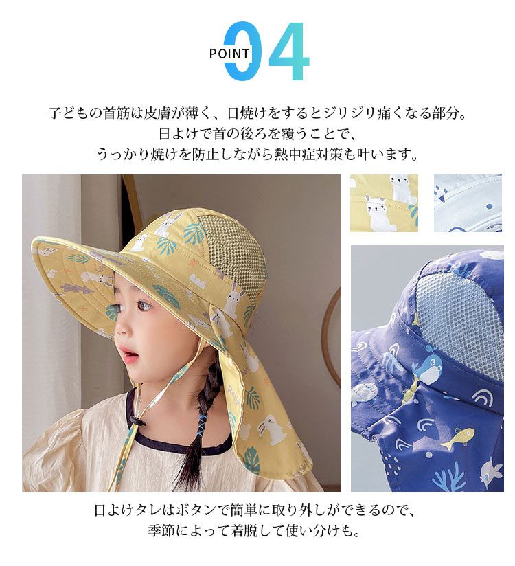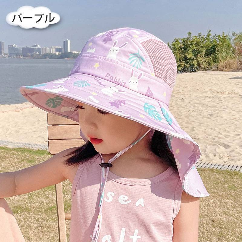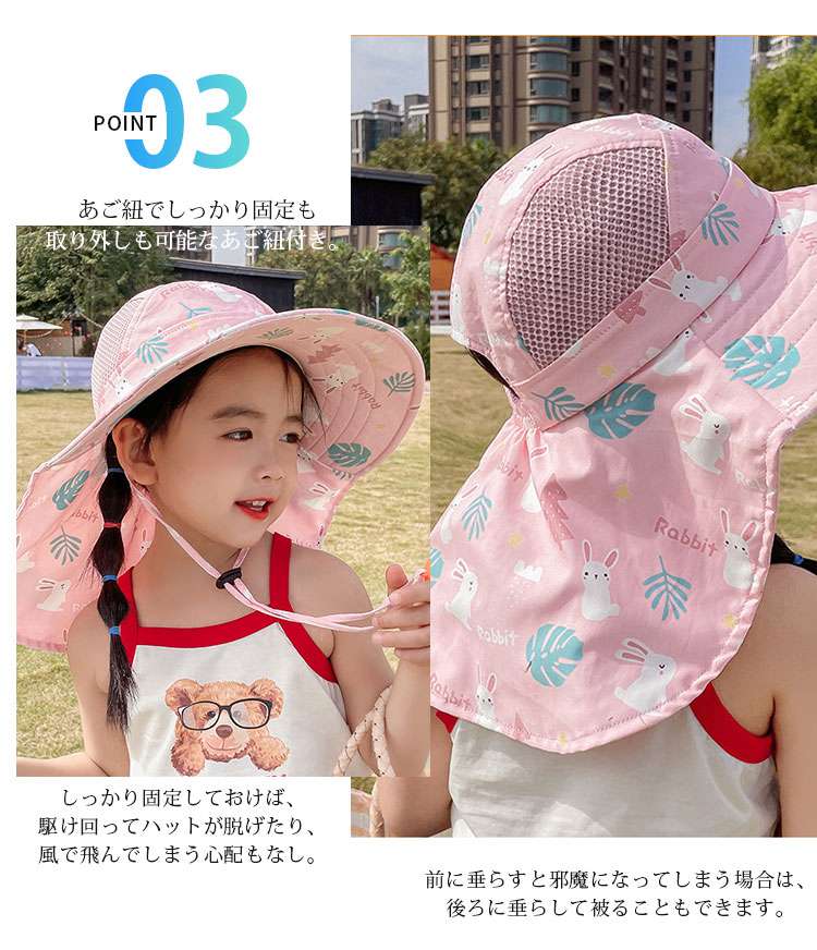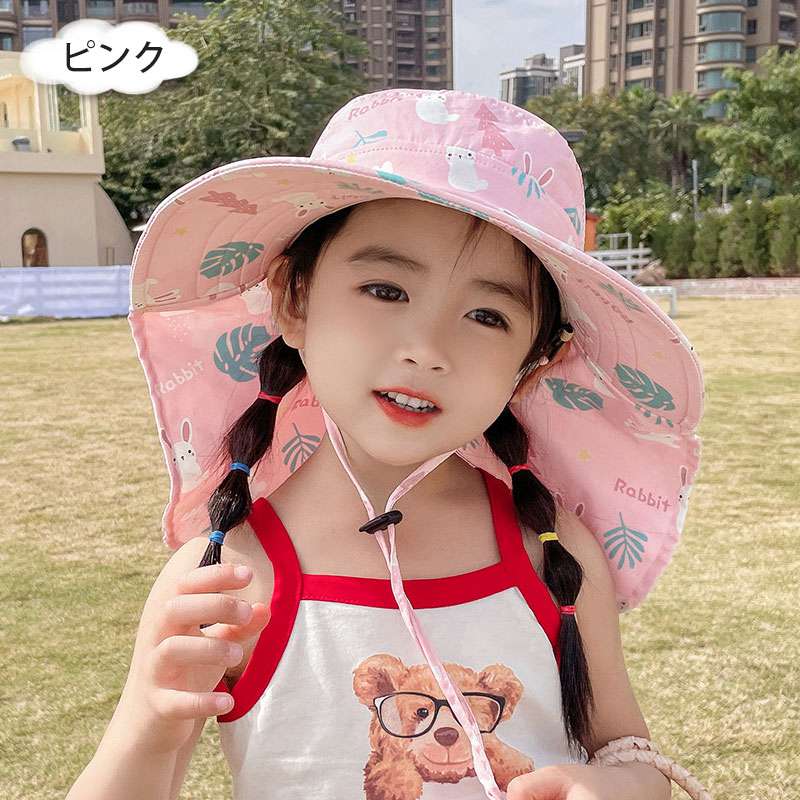 帽子 キッズ ゴム紐 日よけ 子供 春 夏 顎紐付き uvカット 52cm-54cm メッシュ ハット ベビー 夏用 女の子 男の子 海 小学生 バケットハット 保育園 たれ 日除け ひも つば付き