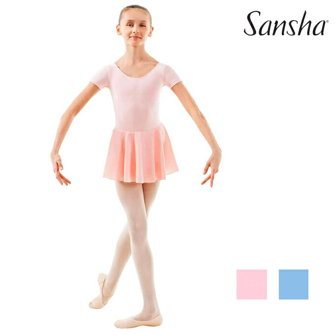 サンシャ バレエ スカート付き 半袖 レオタート ショートスリーブ 子ども キッズ ジュニア用 シンプル コットン 綿 練習 レッスン ブルー ピンク 高品質 ダンス フィットネス 発表会 新商品