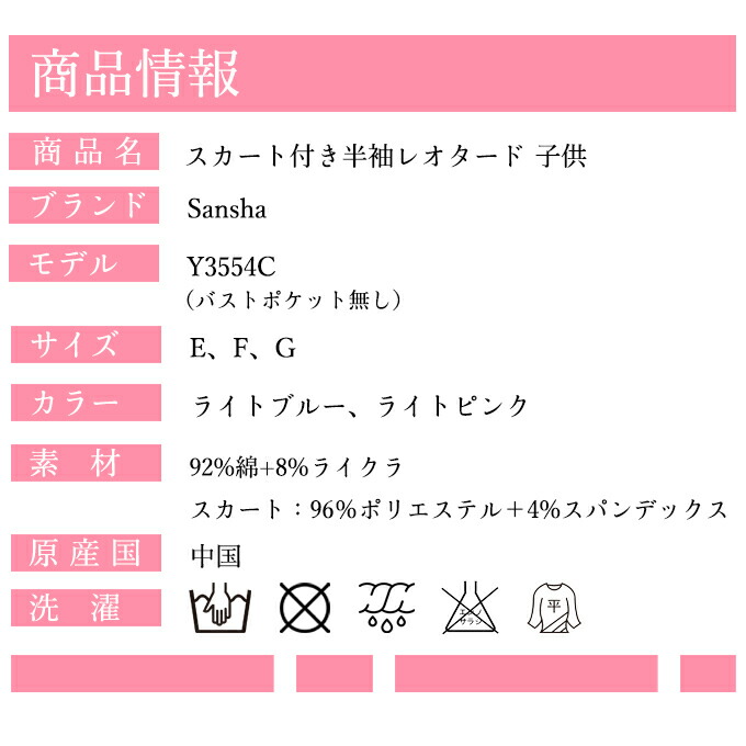 サンシャ バレエ スカート付き 半袖 体操 ダンス バレエ レオタード 早い者勝ち ライトブルー ライトピンク E F G