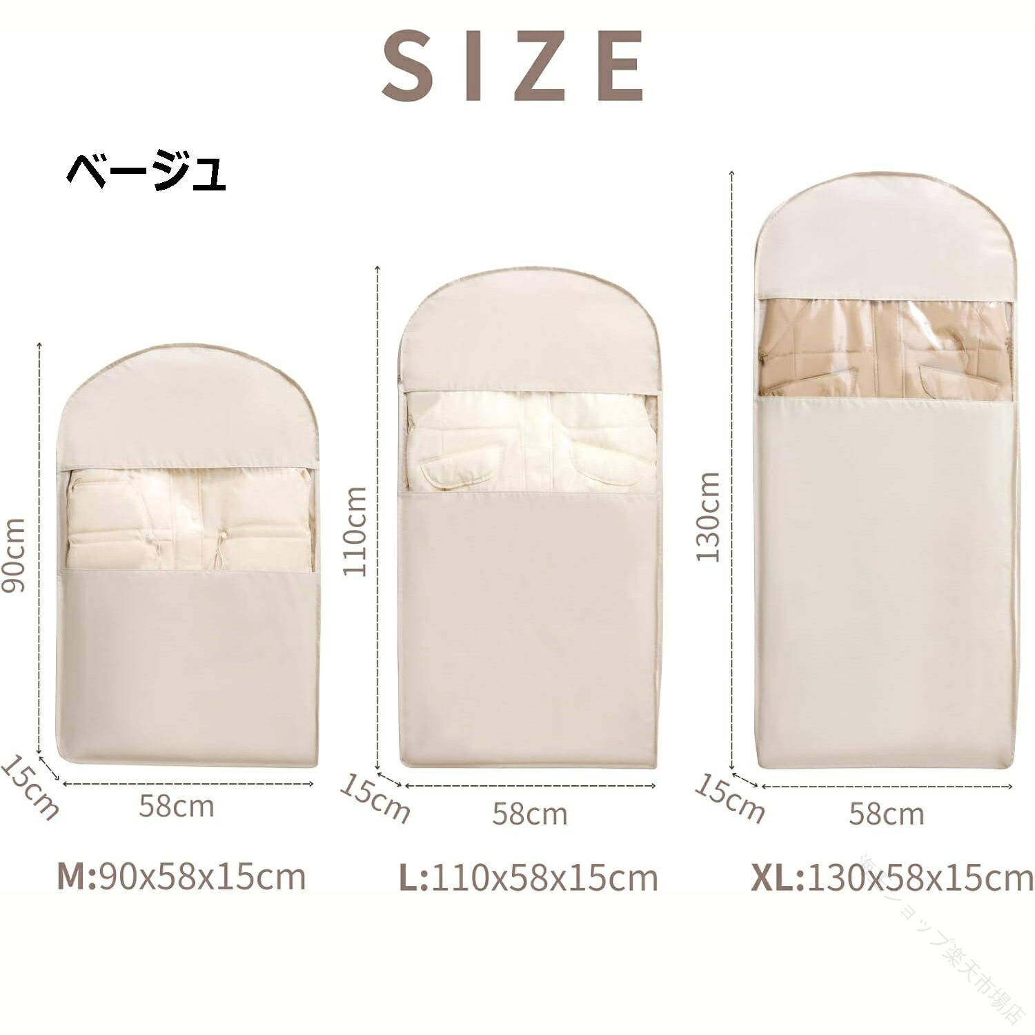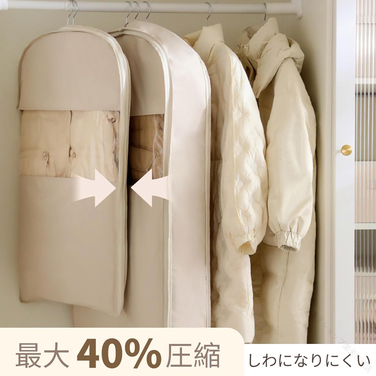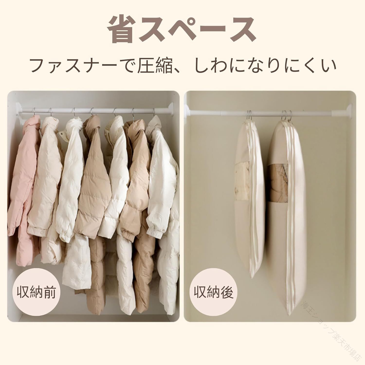 衣類 圧縮袋 吊るせる 圧縮アウターカ ベージュ ピンク 90*58*15cm 110*58*15cm 130*58*15cm (S+M)2個 (S+L)2個 (M+L)2個