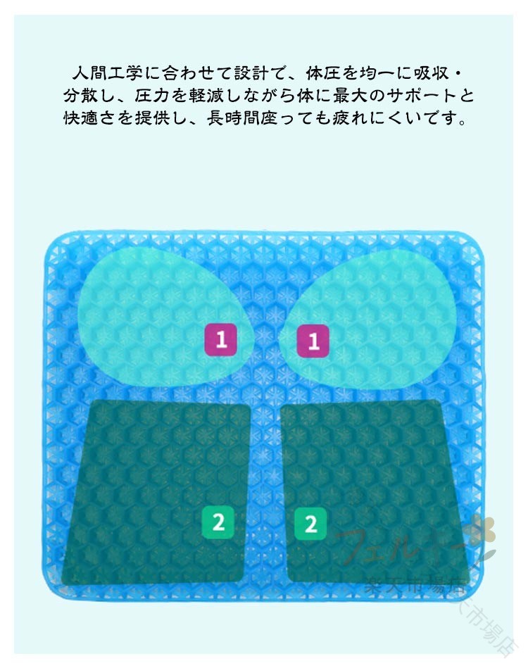 .腰 痛み 対策 に最適 な 二重構造 ハニカム ジェルクッション は 衝撃 吸収 と 体圧 分散 機能 で 骨盤 矯正 をサポート します。洗える シリコン 素材 の 椅子用 お尻 クッション は 長時間 座っても 快適 で 腰 の 負担 を軽減。オフィス や 車 など 多様 な 使用シーン に適応 し、腰痛 に悩む 方 におすすめ です。。