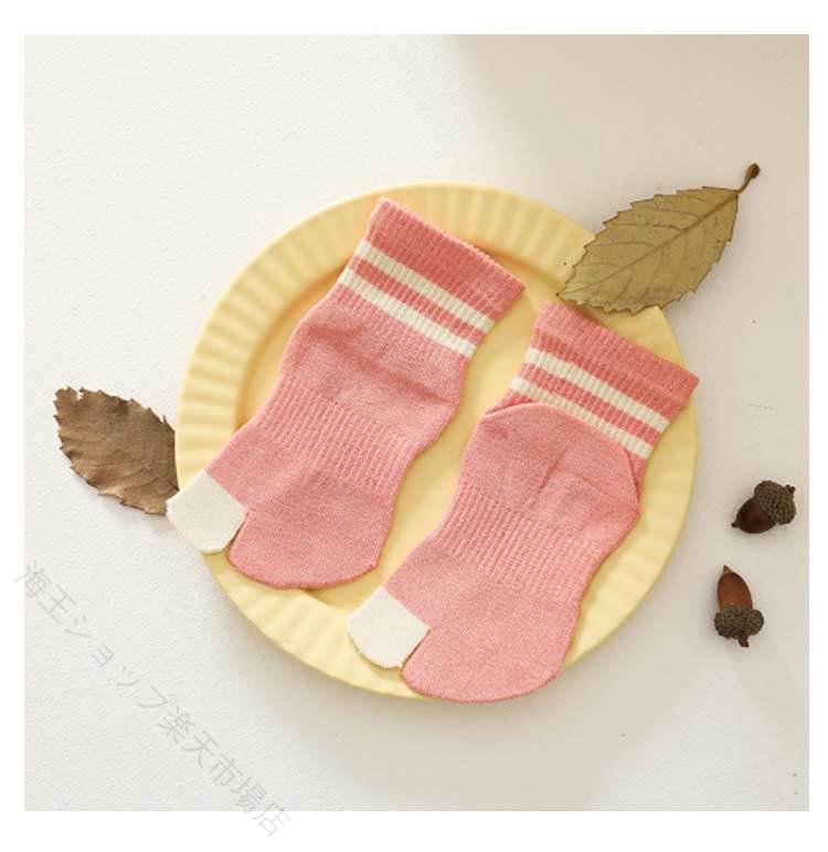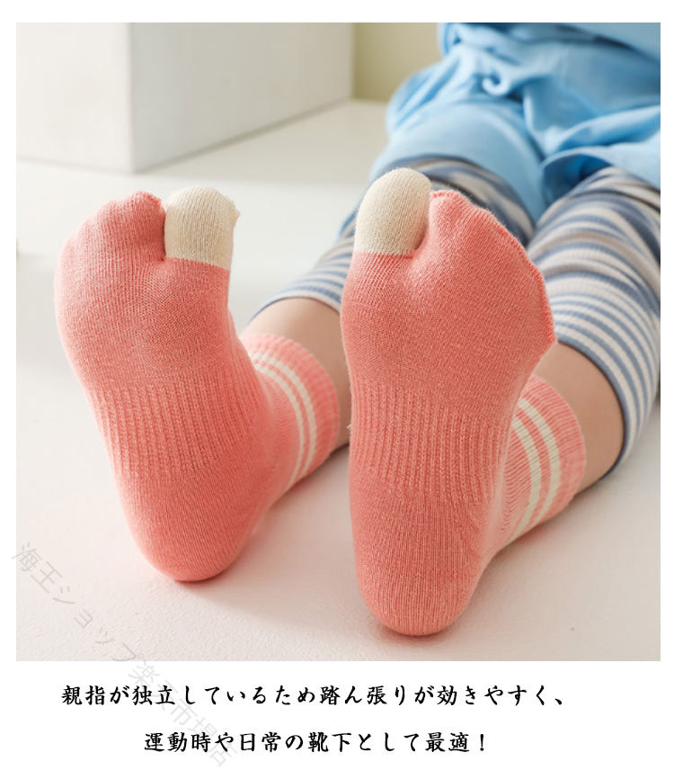 【4足セット】【子供用足袋ソックス】こども用のくるぶし丈の足袋ソックスです。親指が独立しているため踏ん張りが効きやすく、運動時や日常の靴下として最適!伸縮性があり、締め付け感は少なく、安心して一日履けます。指と指と間を遮ることで、間の汗を吸収しやすい分、臭い防止にも効果があります。足袋型の2本指ソックスは、五本指ソックスよりも着脱が簡単。