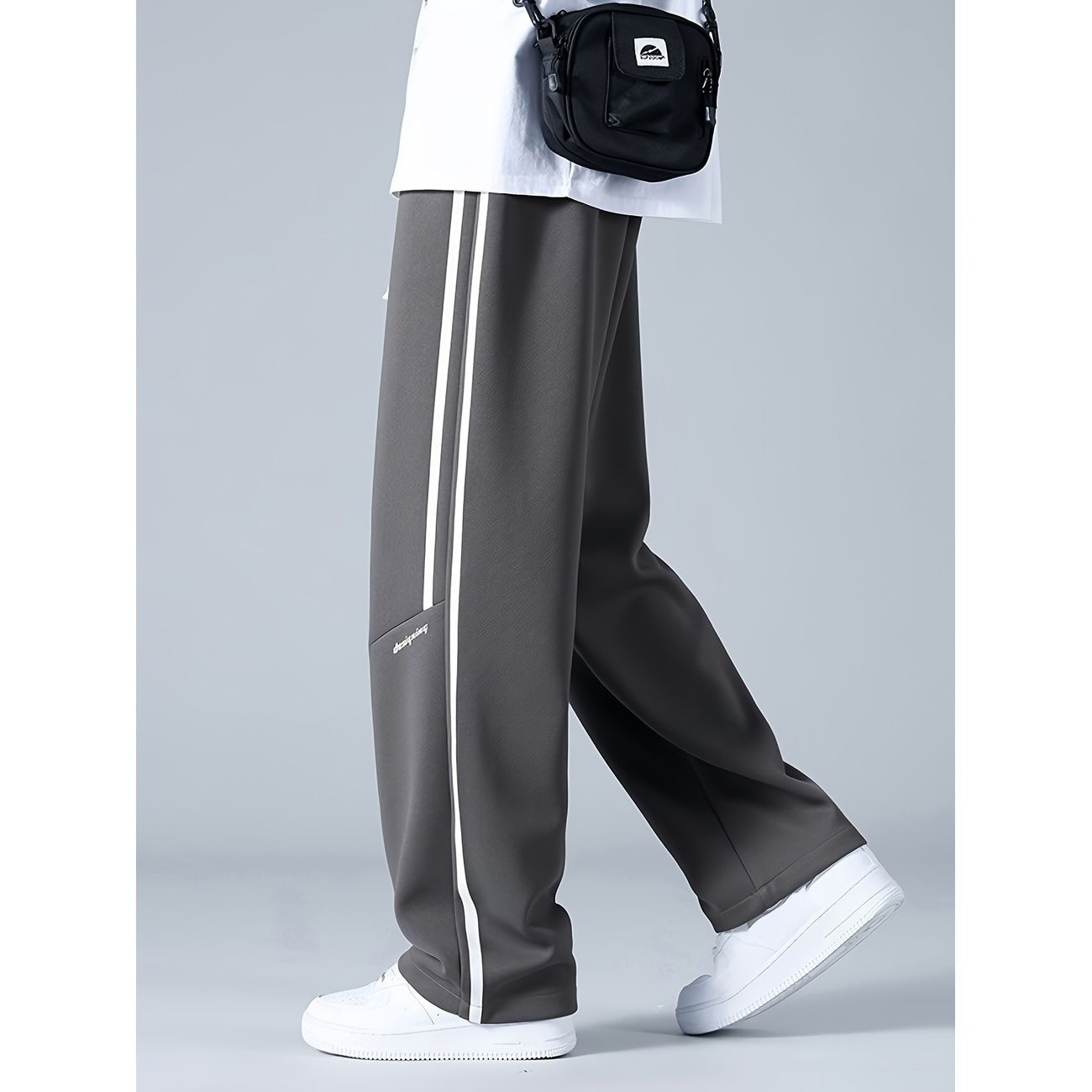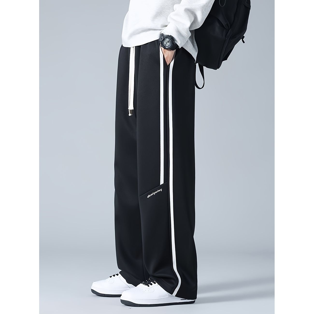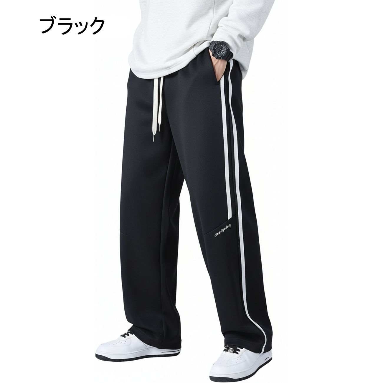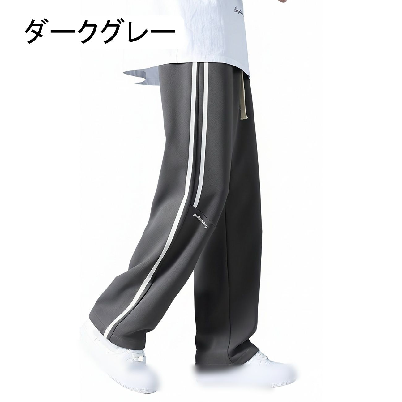 スウェットパンツ メンズ ワイドパンツ サイドライン ストリート系 ゆったり 無地 ビッグシルエット ロングパンツ 春 秋 カジュアル ウエストゴム ドローストリング 通気性 ズボン