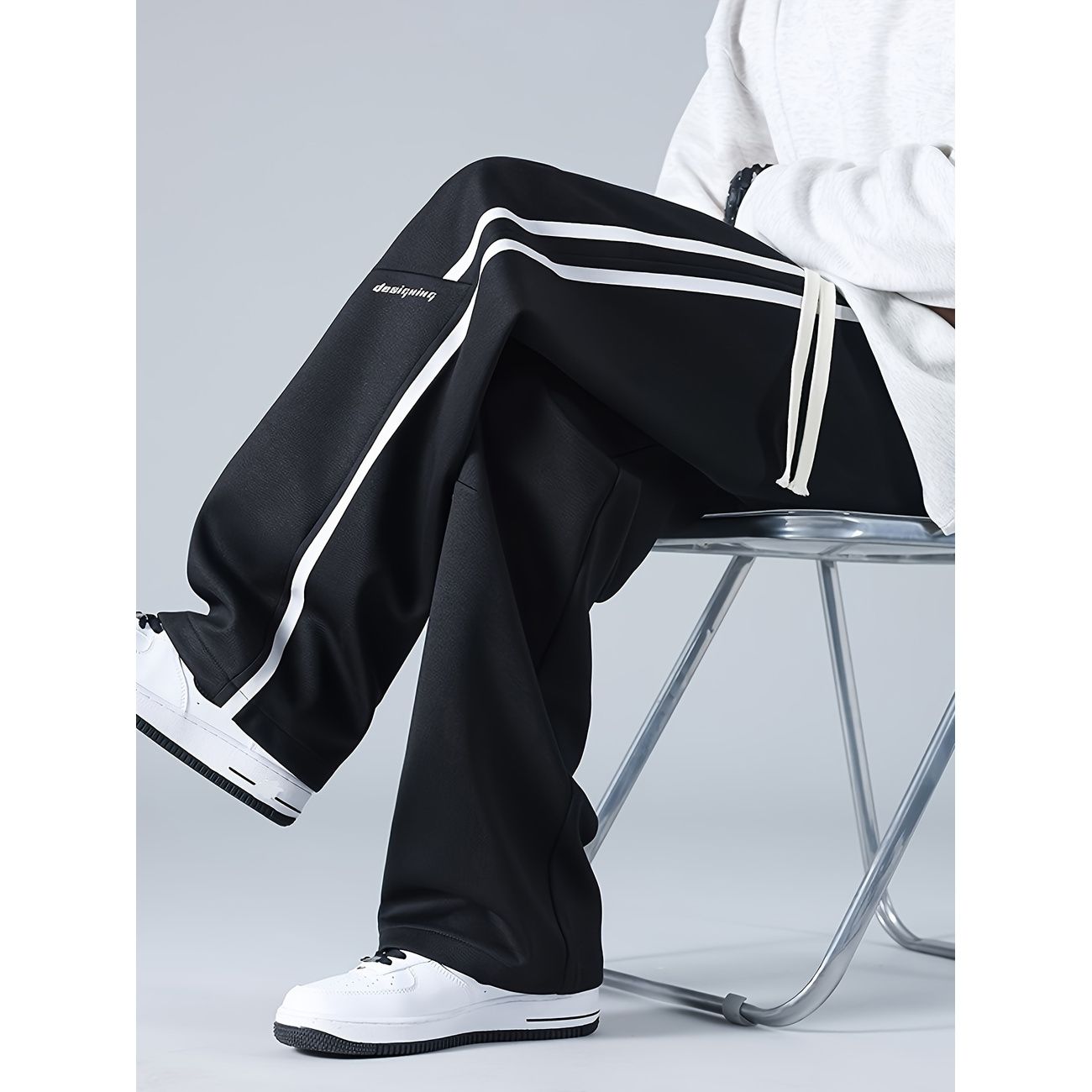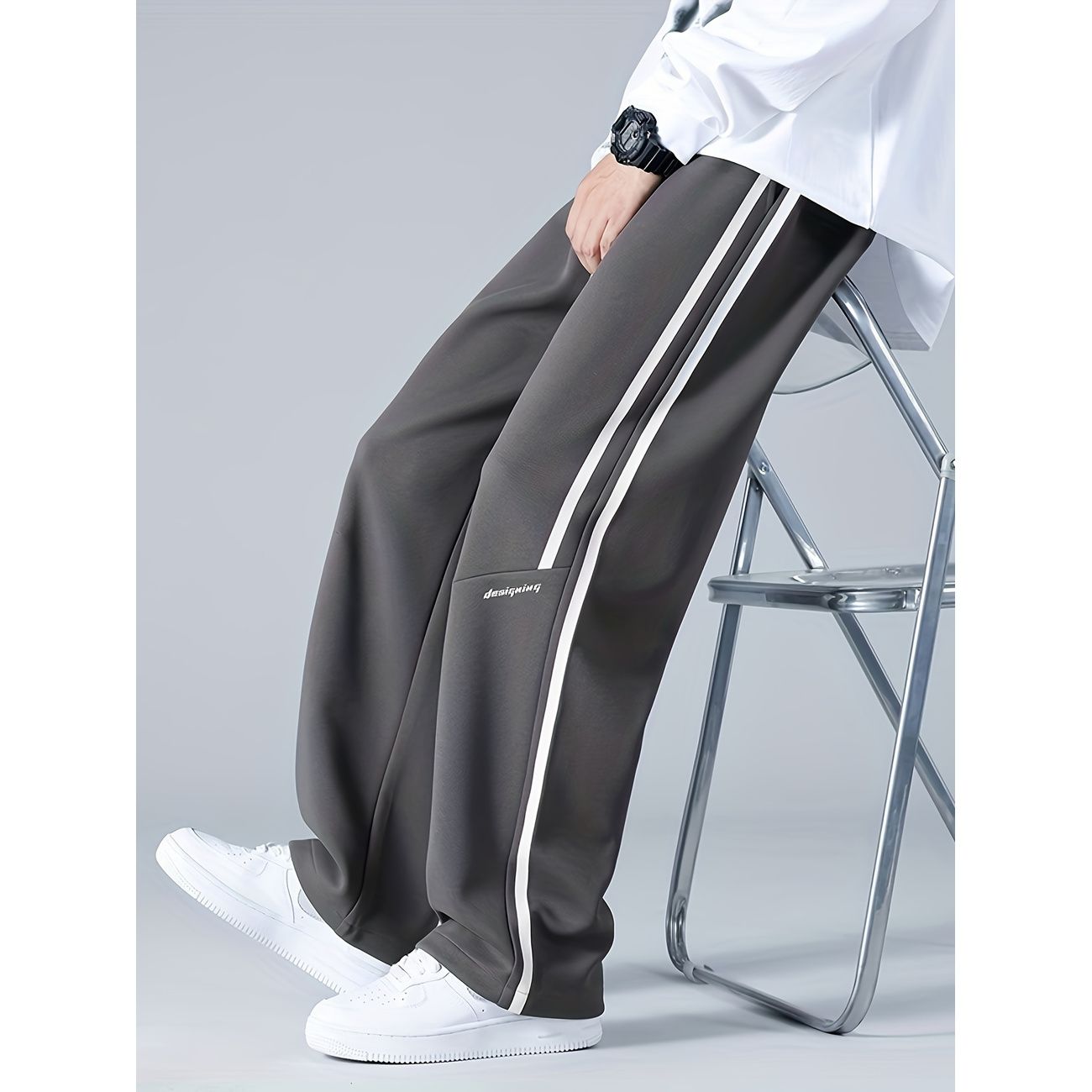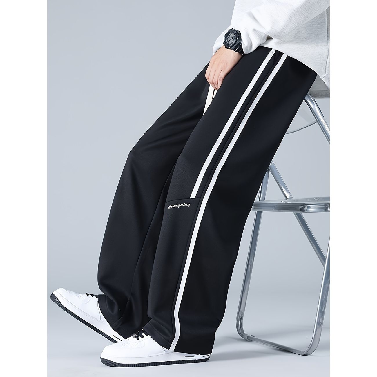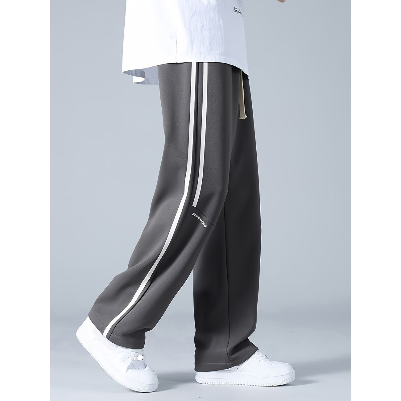 スウェットパンツ メンズ ワイドパンツ サイドライン ストリート系 ゆったり 無地 ビッグシルエット ロングパンツ 春 秋 カジュアル ウエストゴム ドローストリング 通気性 ズボン