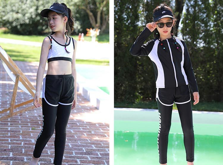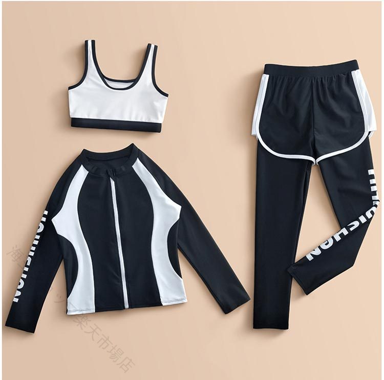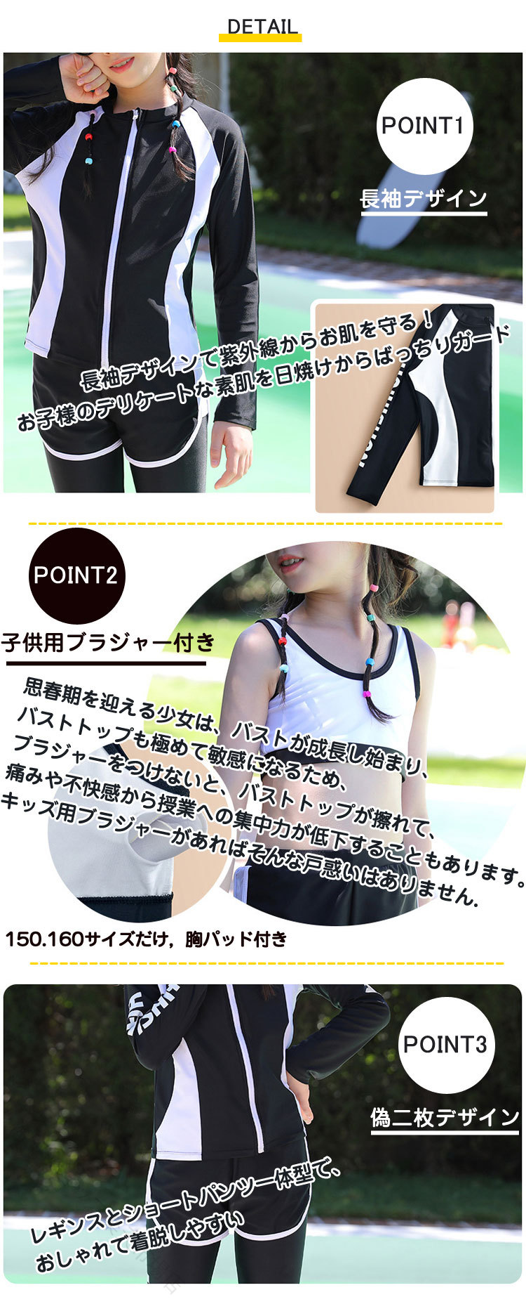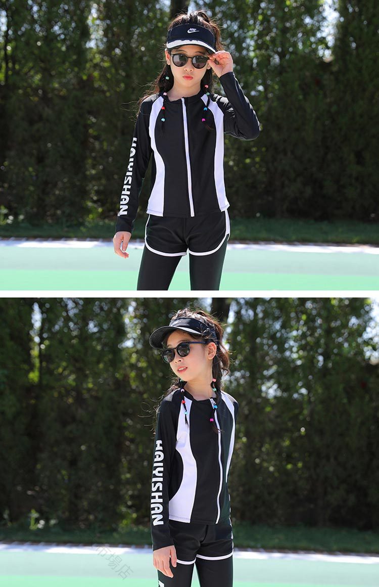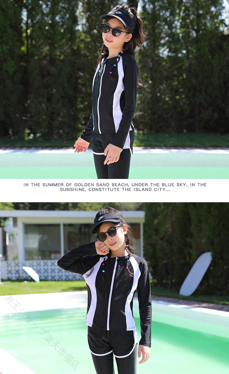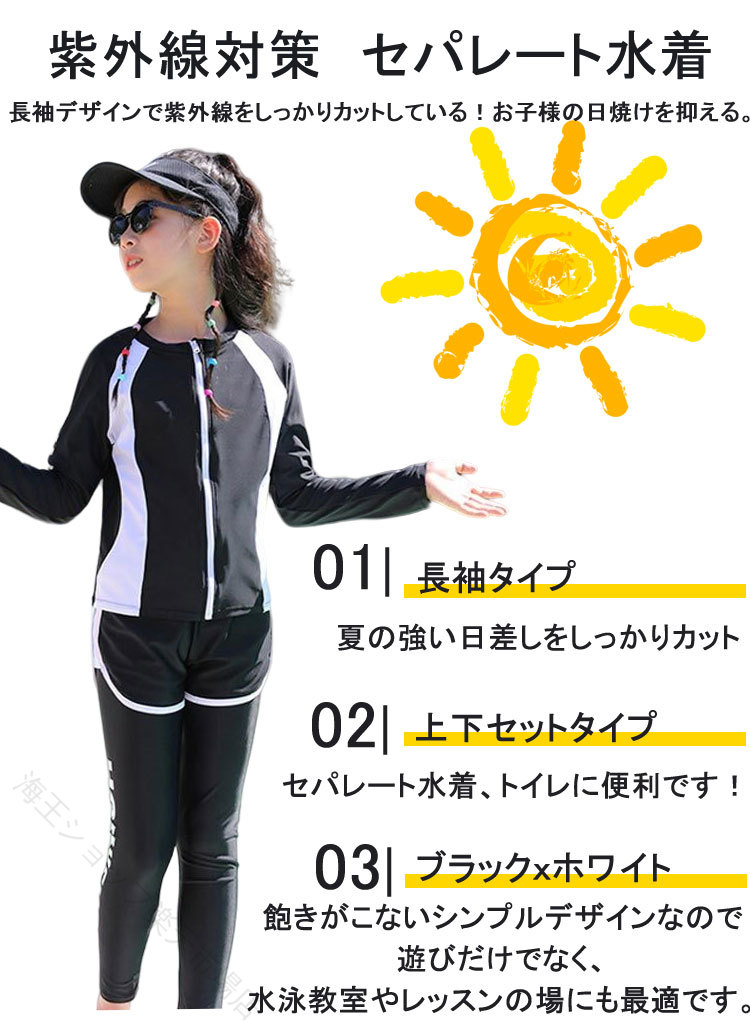 スクール水着 長袖 3点セット みずぎ ジュニア 体型カバー UVカット セパレート ラッシュガード 水陸両用 フィットネス水着 130 140 150 160cm 中学生 高校生 紫外線対策 小学生
