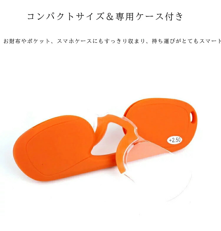 超軽量ノーズクリップ老眼鏡老眼鏡 鼻掛 バッグ 小物 ブランド雑貨 人気 レッド ブラック ホワイト オレンジ グレー ブラウン ピンク ネイビー 1 1.5 2 2.5 3 3.5