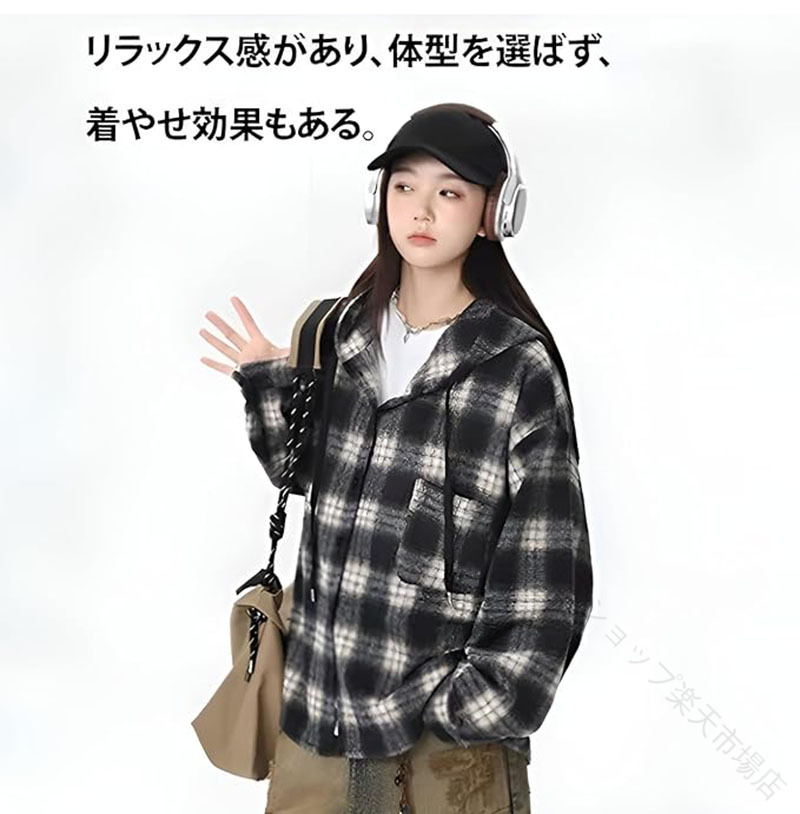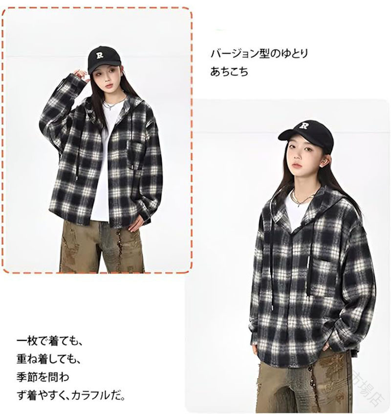 .パーカー メンズ レディース 用 ユニセックス 男女兼用 の 長袖 フード付き チェック柄 シャツ スウェットパーカー です。ルーズスタイル で 厚手 の 素材を使用し、春秋 の 通勤 通学 や 普段着 に最適な カジュアル ファッション アイテム。大きいサイズ も揃っており、原宿系 の おしゃれ な トップス として幅広いシーンで活躍します。。