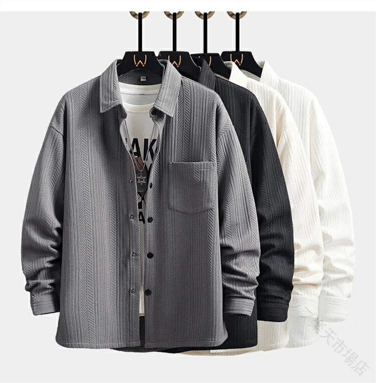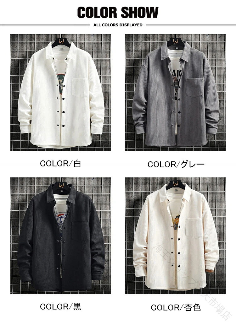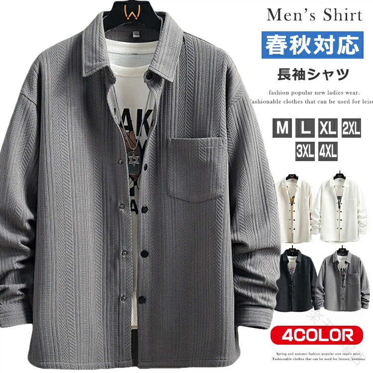 メンズ シャツ 長袖 ジャカード 織り メンズファッション 早い者勝ち M L XL 2XL 3XL 4XL 白 グレー 黒 杏色
