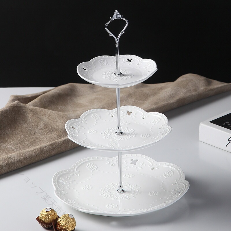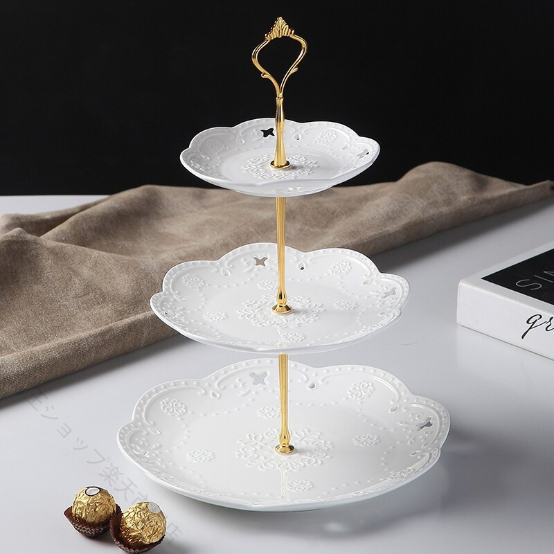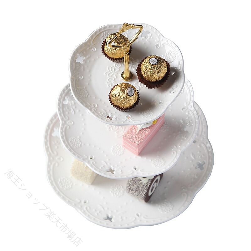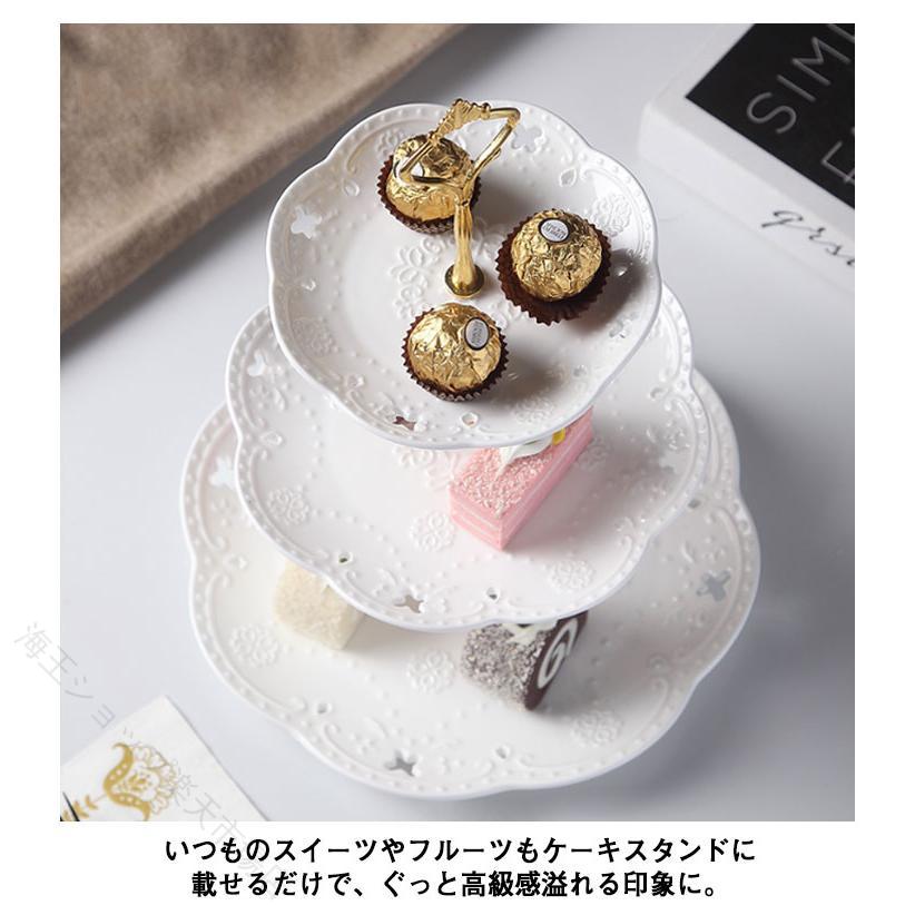 3段ケーキスタンド アフタヌーンティー ハイティースタンド パーティー活用 スイーツプレート おしゃれ焼き菓子スタンド 北欧風デザイン 結婚式小物 フォールダブルプレート おもてなし用 誕生日ケーキ台