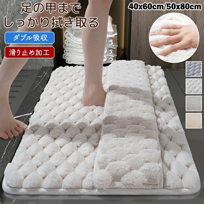 浴室マット おしゃれ 風呂マット 洗える 柔らか 防滑 足拭き 水滴吸水 ふわふわ 新築祝い プレゼント 快適バスマット もこもこ素材 洗面所 吸水速乾 滑り止め 足入れ可能