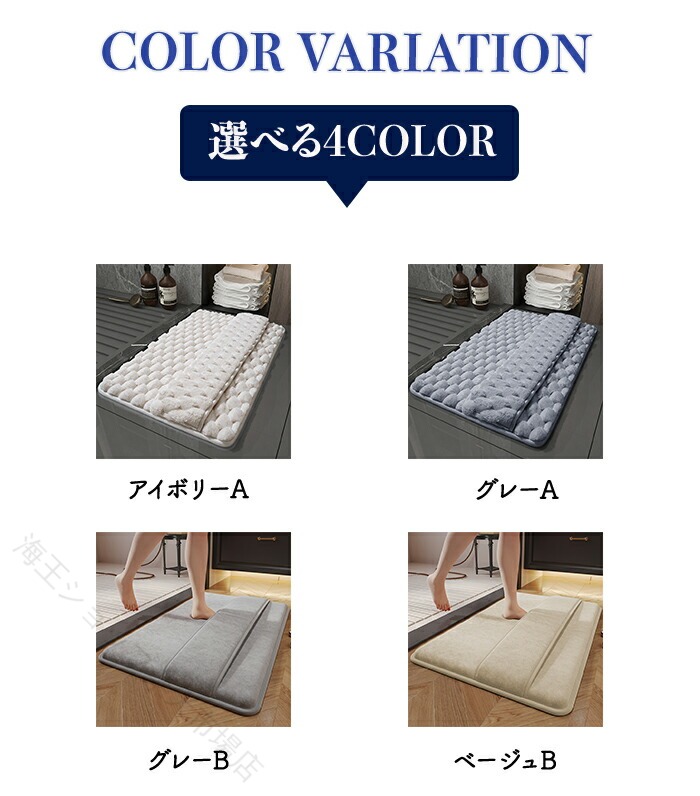 浴室マット おしゃれ 風呂マット 洗え バス用品 バスマット 豊富な品揃え アイボリーA グレーA グレーB ベージュB 40*60cm 50*80cm