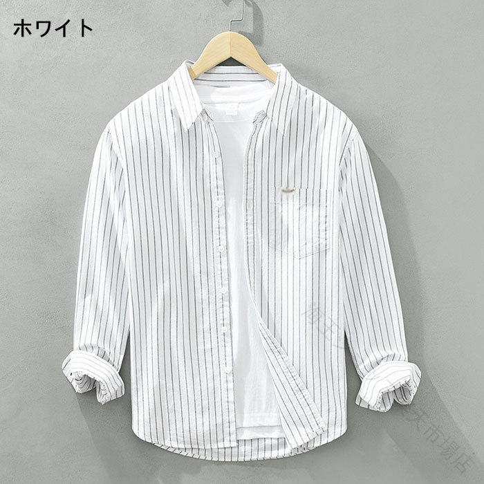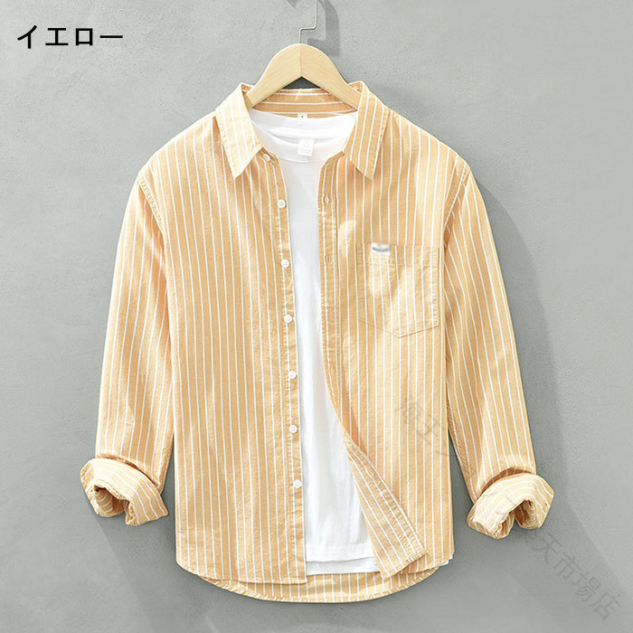 メンズ シャツ 長袖 コットンシャツ 綿 ストライプ 縞柄 全6色 ホワイト イエロー グレー ブルー ピンク グリーン 大きいサイズ M-3XL カジュアルシャツ 普段着 通勤 春 春服 夏 通学