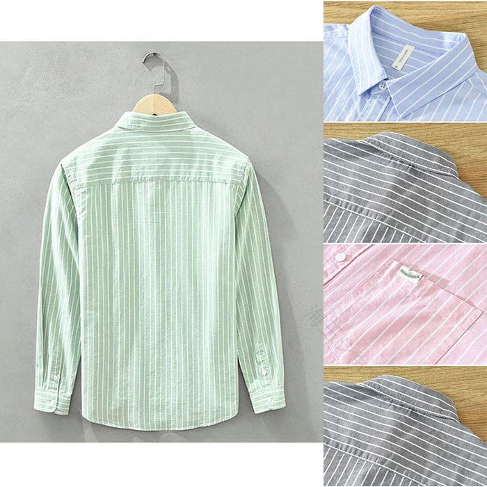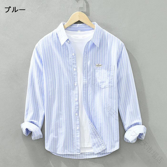 .メンズ シャツ 長袖 コットンシャツ は 綿 素材 で ストライプ 縞柄 の 全6色 ホワイト イエロー グレー ブルー ピンク グリーン を ご用意 し 大きいサイズ M-3XL まで 対応 します。カジュアルシャツ として 普段着 や 通勤 通学 に 最適 で 春 春服 夏 夏服 の 涼しい デザイン が 特徴 です。男性 向け の おしゃれ な トップス です。。