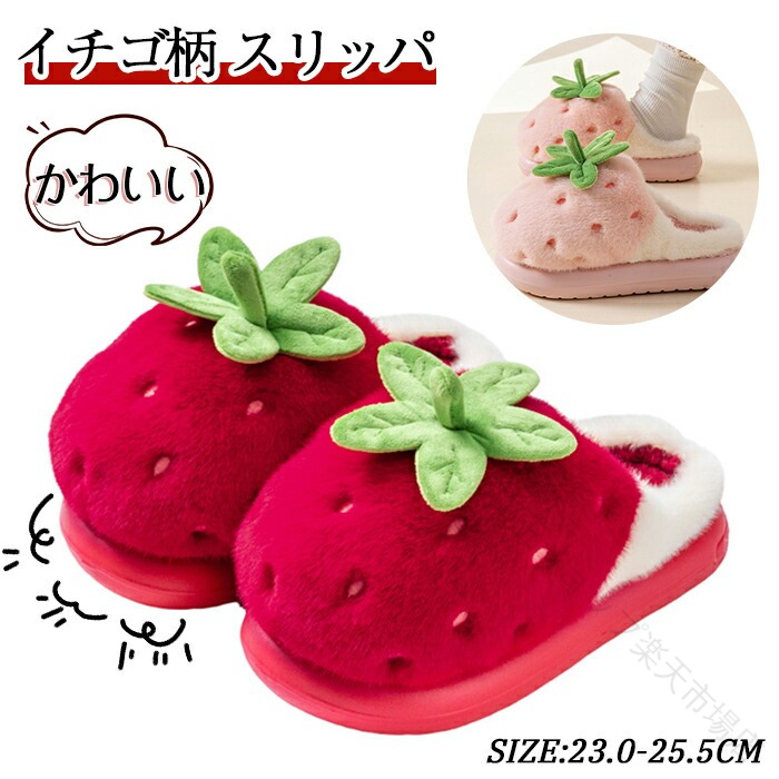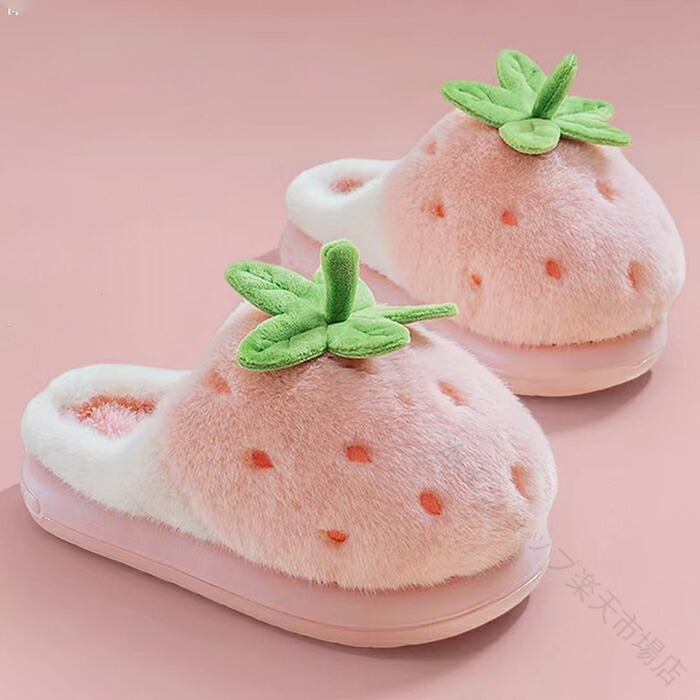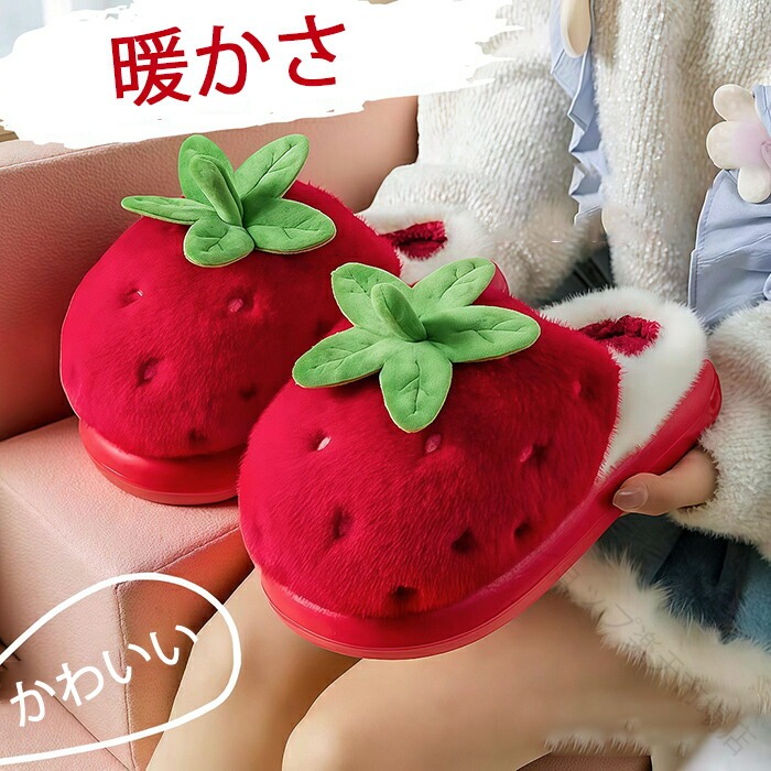 女性用 ルームシューズ もこもこ ふわふわ いちご ピンク 冬 あったか 防寒 保温 軽量 室内履き スリッパ ルームブーツ 足冷え対策 プレゼント おもしろ サンダル