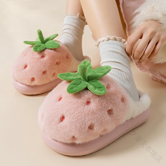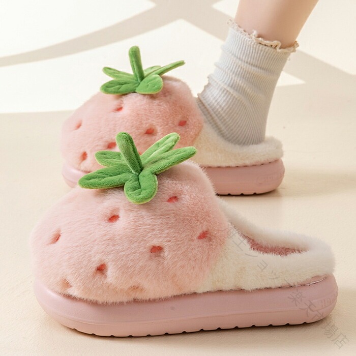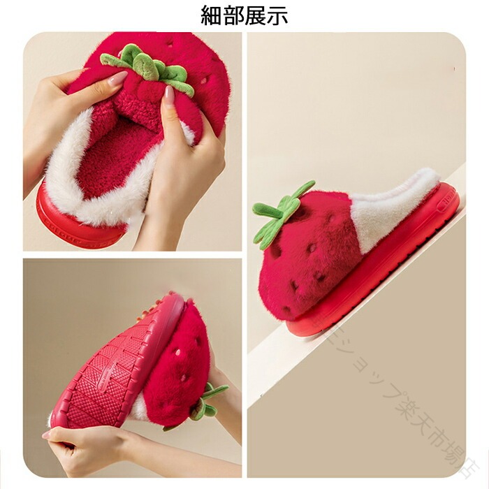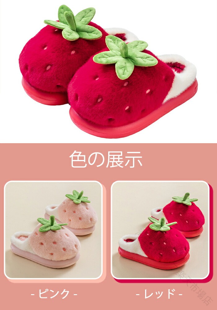 ルームシューズ 女性用スリッパ ルームシューズ もこもこ ふわふわ スリッパ 室内 いちご サンダル 暖かい 冬 ピンク冬の暖かさ プレゼント スリッパ おもしろ ルームブーツ 冬 あったか 防寒 保温 室内履き 軽量 足冷え対策