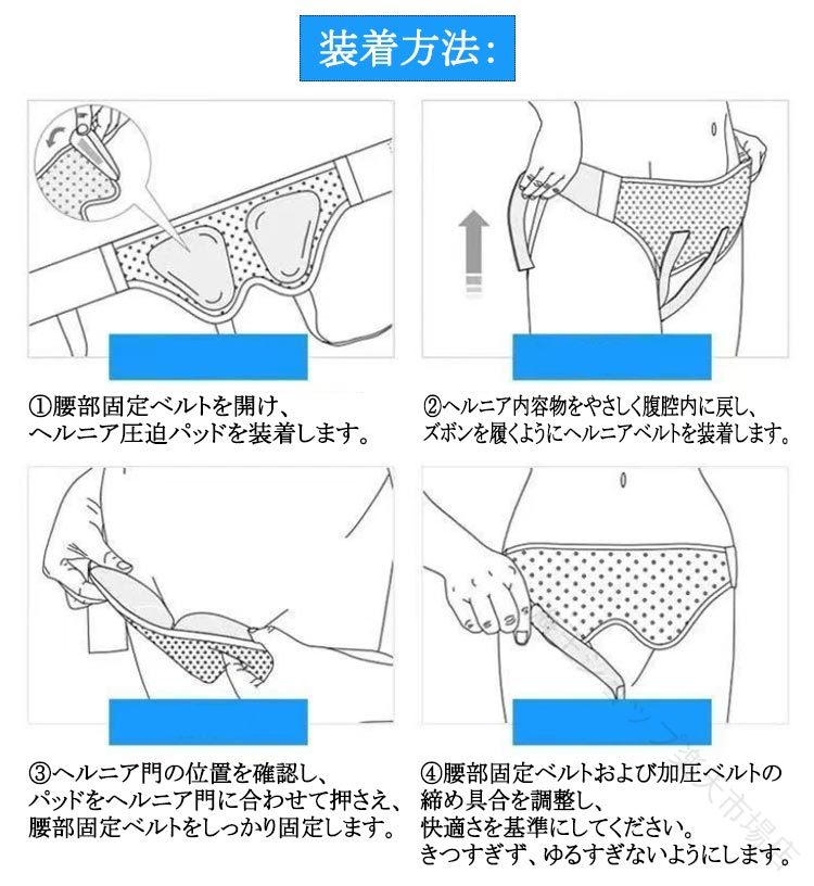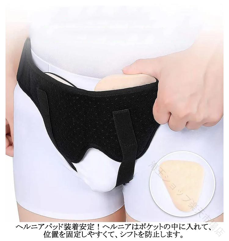 下腹部のふくらみ、下腹部の痛み、サポーターの蒸れやずれを解決。男女兼用!伸縮性のあるベルト。ひとりひとりに合わせて調整可能!マジックテープによるサイズ調整!伸縮性によりしっかりフィット!ヘルニアパッド装着安定!ヘルニアはポケットの中に入れて、位置を固定しやすくて、シフトを防止します。快適で通気性の生地、仕立てが細かくて、 夏は蒸し暑くなくて、四季が着ることができます。弾性ベルト設計!ウエストの弾力帯の設計、調節しやすい。取り外しできる圧力パッド2個付き、シングルもダブルも対応できます。鼠径ヘルニアサポートベルトで弱った筋肉をしっかりサポート。装着方法:1.腰部固定ベルトを開け、ヘルニア圧迫パッドを装着します。2.ヘルニア内容物をやさしく腹腔内に戻し、ズボンを履くようにヘルニアベルトを装着します。3.ヘルニア門の位置を確認し、パッドをヘルニア門に合わせて押さえ、腰部固定ベルトをしっかり固定します。4.腰部固定ベルトおよび加圧ベルトの締め具合を調整し、快適さを基準にしてください。きつすぎず、ゆるすぎないようにします。