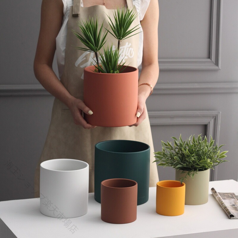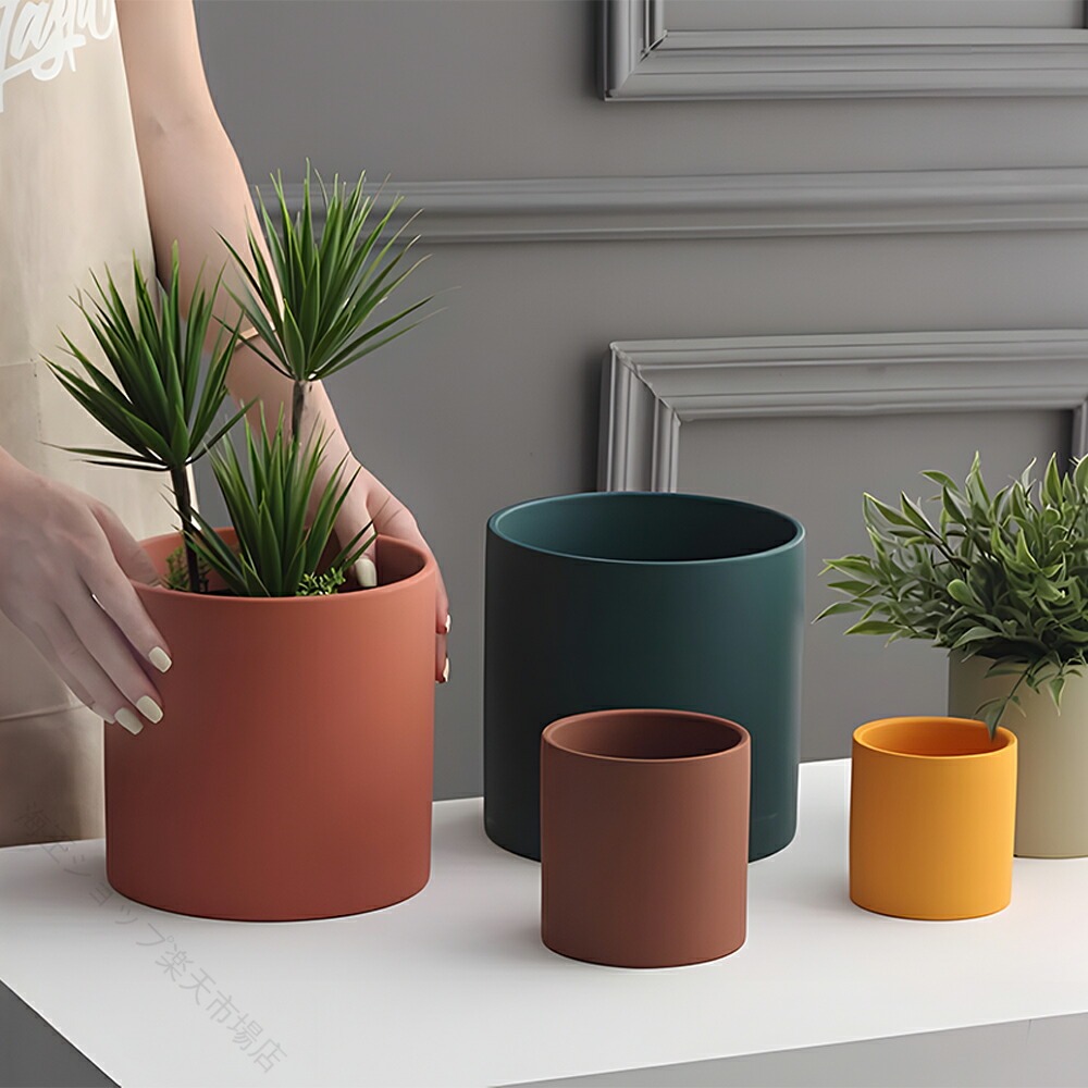 おしゃれな北欧風植木鉢 シンプルな陶器 インクグリーン 抹茶色 ブラウン ブラック オレンジ ブルー イエロー グレー ゴールド ホワイト 9*9CM 11*11CM 13*13CM 15*15CM 18*18CM 20*20CM
