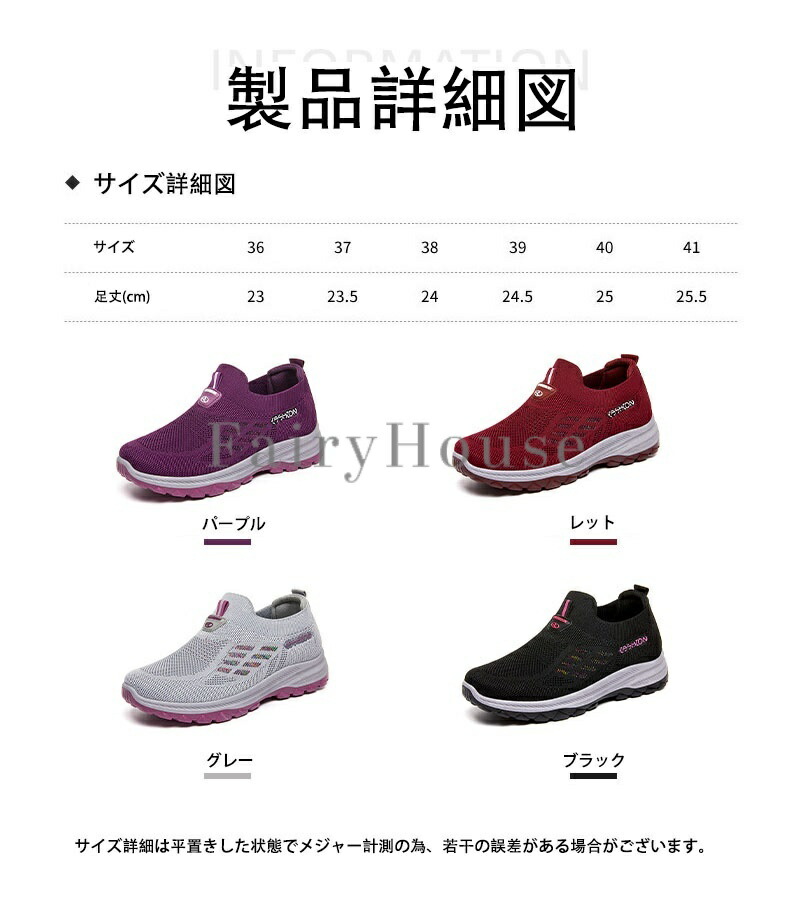スリッポン 履きやすい ウォーキングシ レディース靴 スニーカー 通販 パープル レッド グレー ブラック 36 37 38 39 40 41