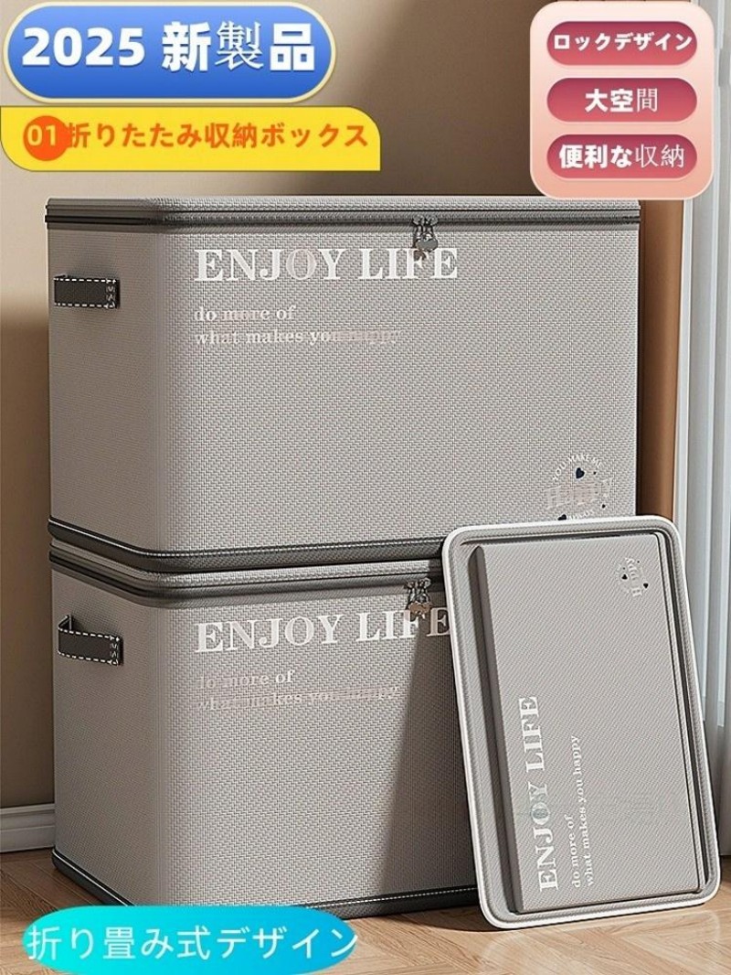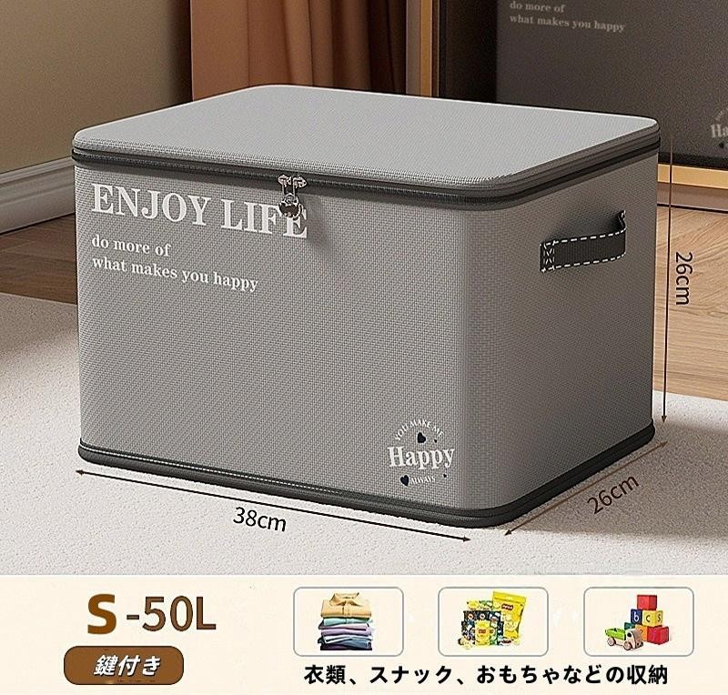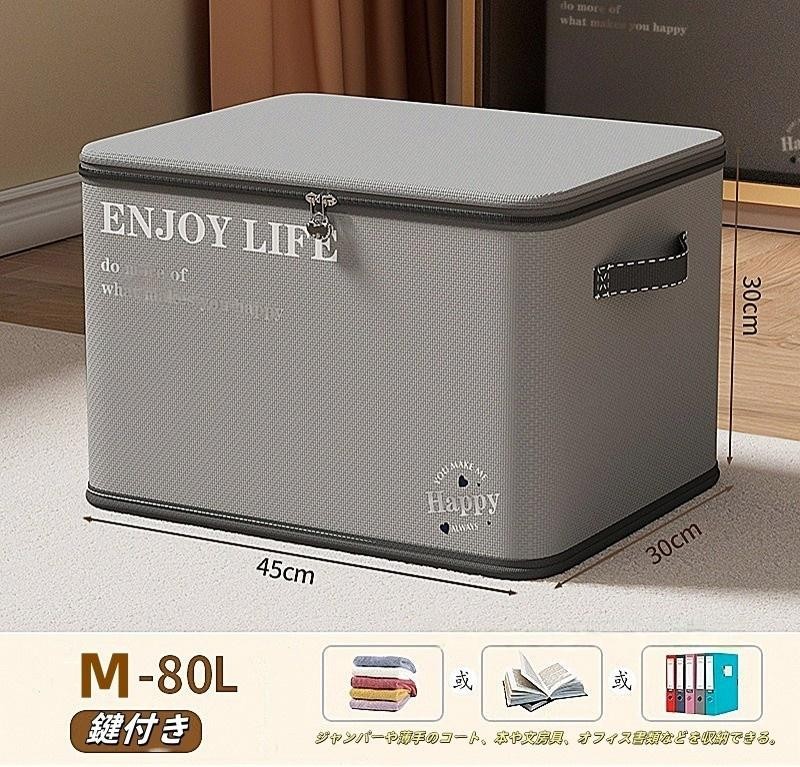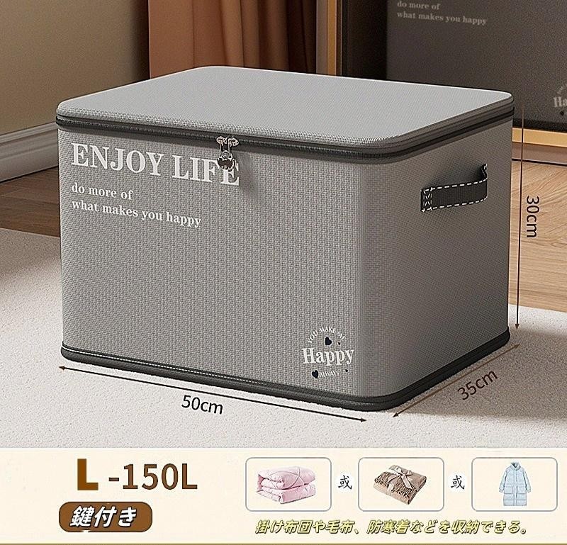 2025 収納新製品 鍵付き収納ボック グレー ベージュ グリーン・ストライプ S-50L M-80L L-150L