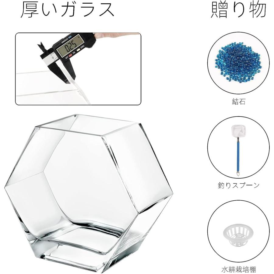 金魚鉢 水槽 容量約4.2リットル 小シンク 苔テラリウム 六角形ボディ おしゃれガラス 金魚 飼育セット 水耕栽培用スタンド めだかシンク