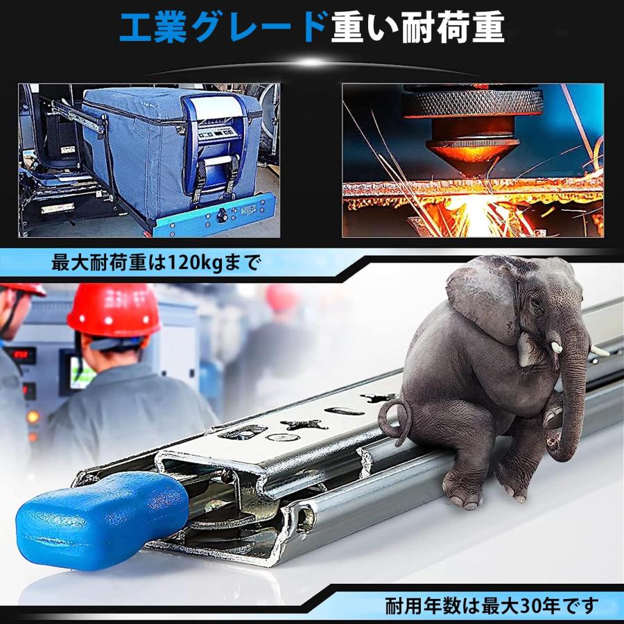 【幅広い用途】商品棚、キャビネット、産業用引き出し、RV、自動販売機など。スライドレールは高品質の冷間圧延鋼でできており、120kgの重量に耐えることができます。スライドレールは分離できません、取り付けブラケットとねじは含まれていません。
