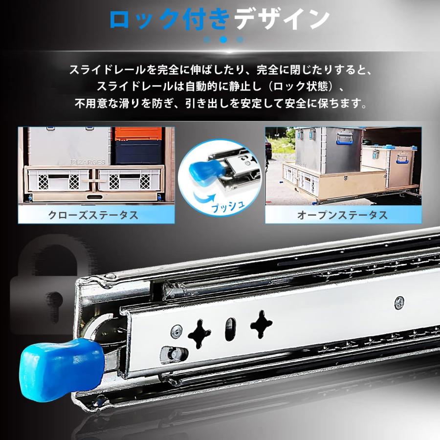 【高品質・ロック機能】スライドレールは電気メッキされた亜鉛メッキで処理されていました。電気めっきされた層は、空気とトラック鋼板との直接接触を防ぎ、酸化と腐食に耐えることができます。引き出しスライドをロックして脱落を防ぐことができます。