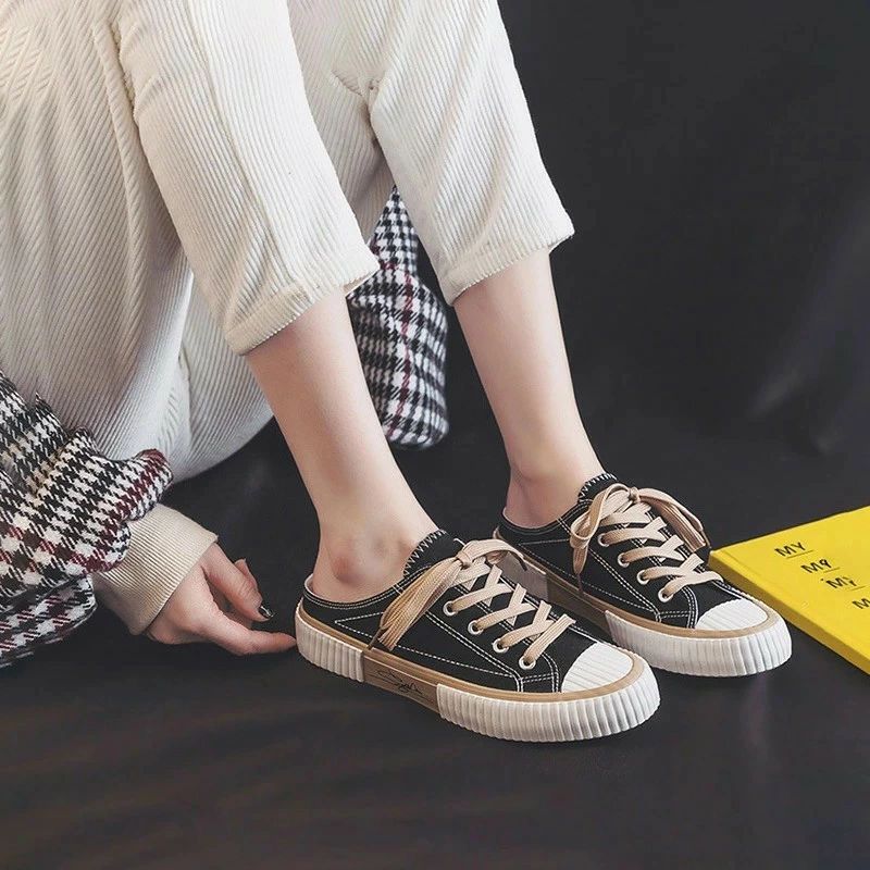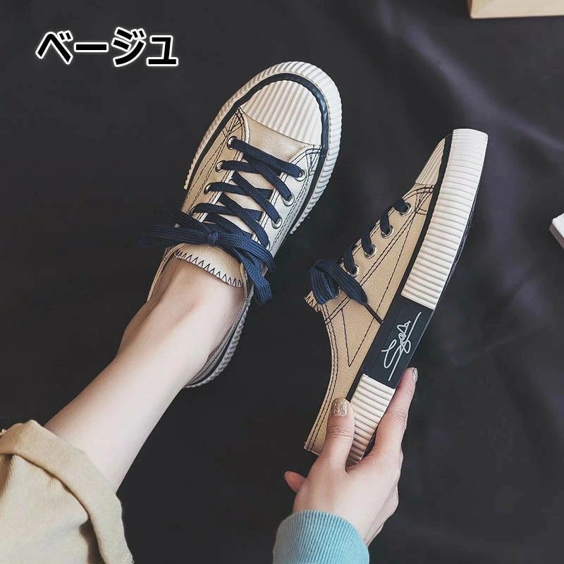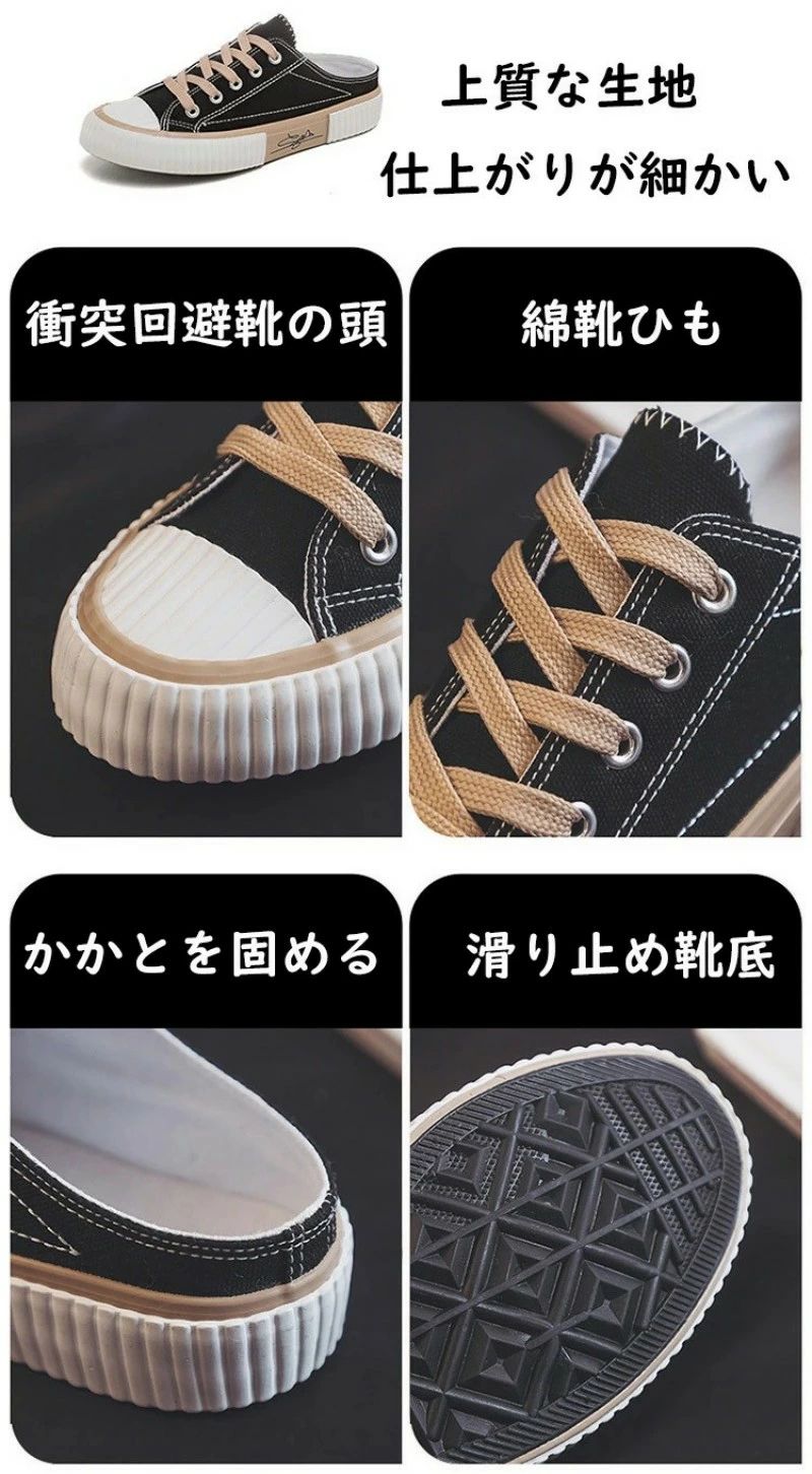 キャンバスシューズ かかとなし スニー ブラック ベージュ 35(22.5cm) 36(23.0cm) 37(23.5cm) 38(24.0cm) 39(24.5cm) 40(25.0cm)