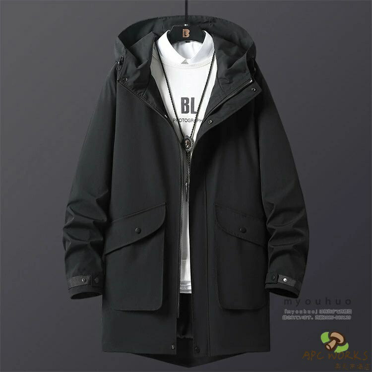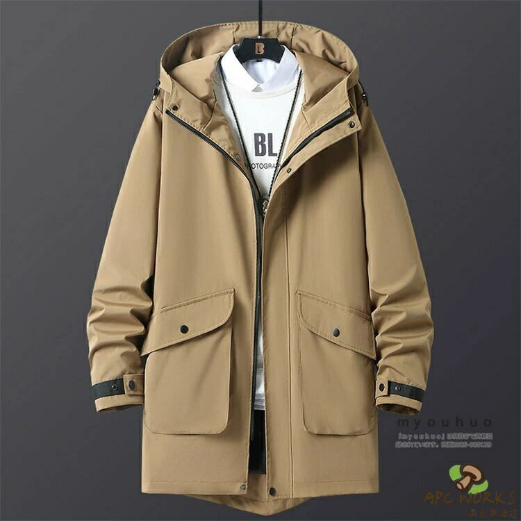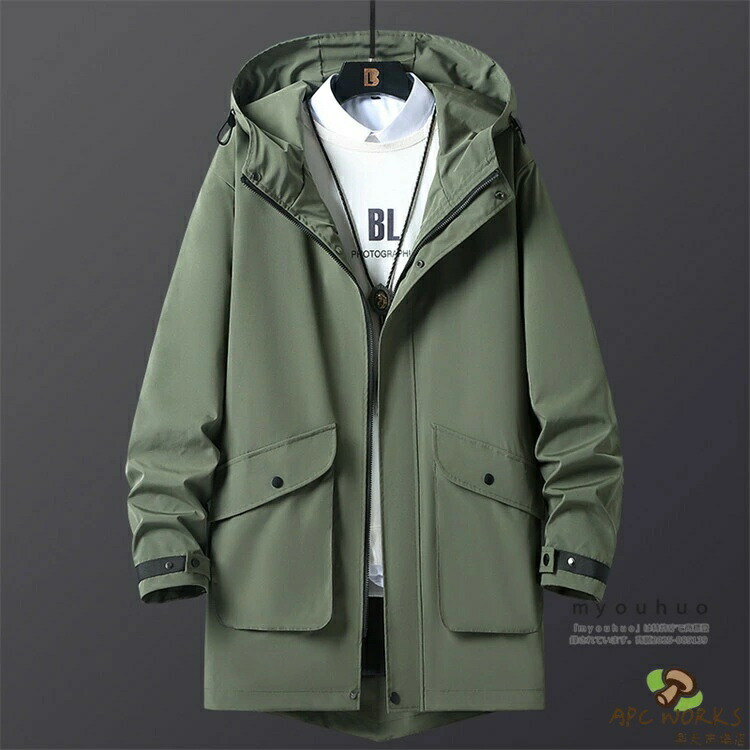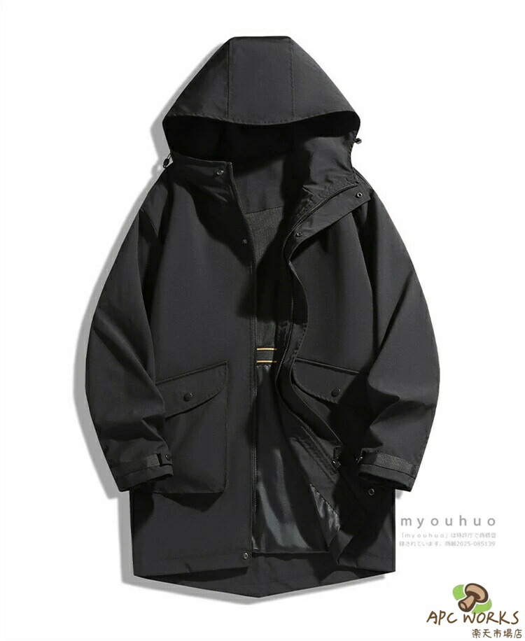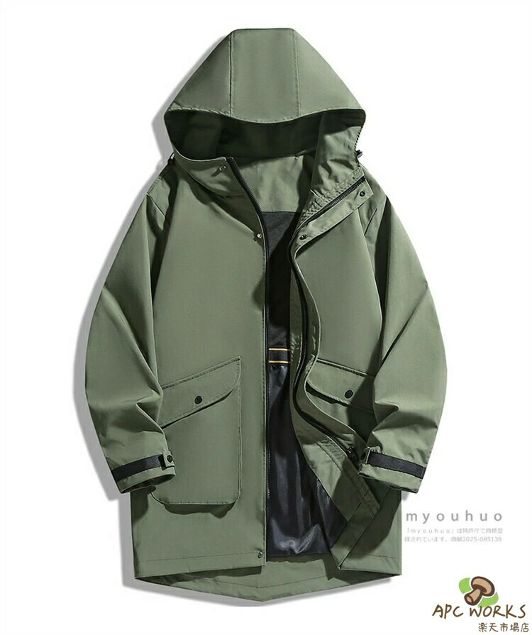 マウンテンパーカー メンズ ロング スプリングコート ウィンドブレーカー ロングジャケット ミドル丈 おしゃれ 無地 アウトドア ブルゾン アウター 防風 撥水 ハーフコート メンズファッション 大きいサイズ 5XL 6XL 7XL