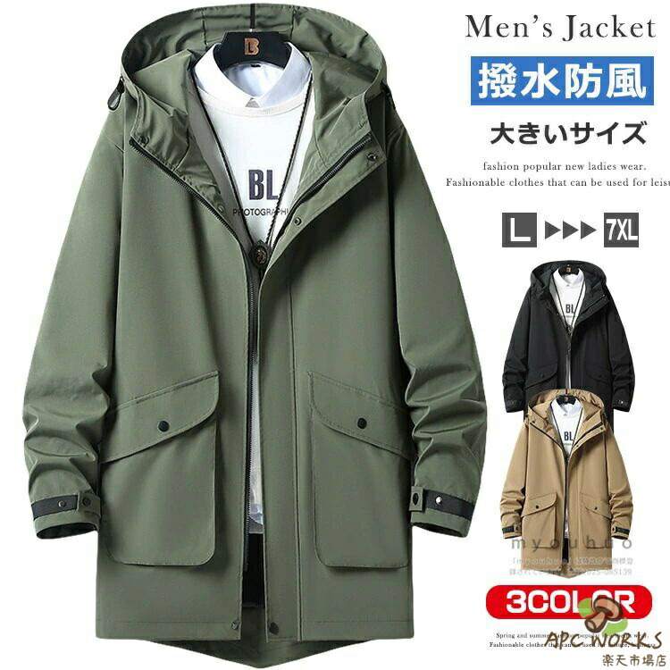 マウンテンパーカー メンズ ロング ス メンズファッション 新作 黒 ベージュ オリーブ L XL 2XL 3XL 4XL 5XL 6XL 7XL