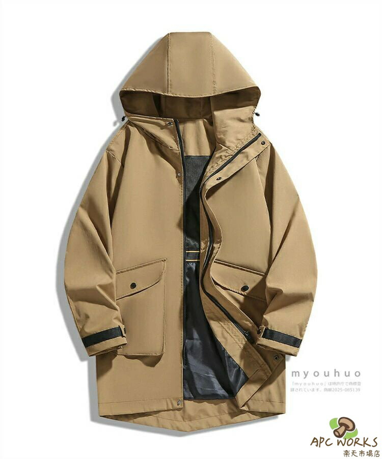 マウンテンパーカー メンズ ロング スプリングコート ウィンドブレーカー ロングジャケット ミドル丈 おしゃれ 無地 アウトドア ブルゾン アウター 防風 ハーフコート メンズファッション 大き 撥水