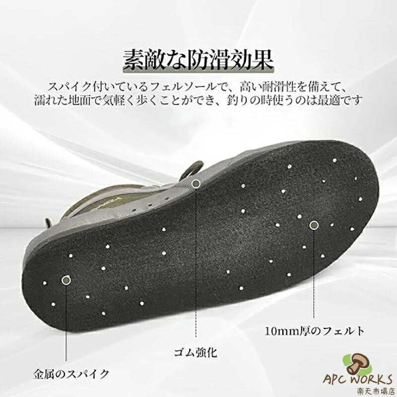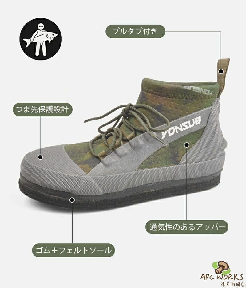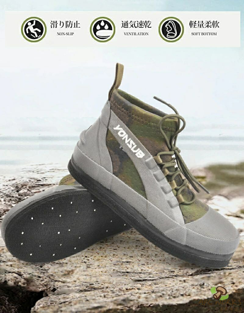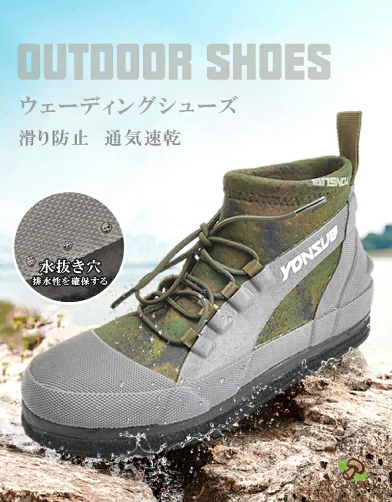 ウェーディング シューズ メンズ アウトドア 靴 フィッシング ブーツ 釣り フェルト スパイク 磯靴 靴ひも付き 滑り止め 撥水性 通気性 磯釣り 岩場 迷彩柄 カジュア 渓流