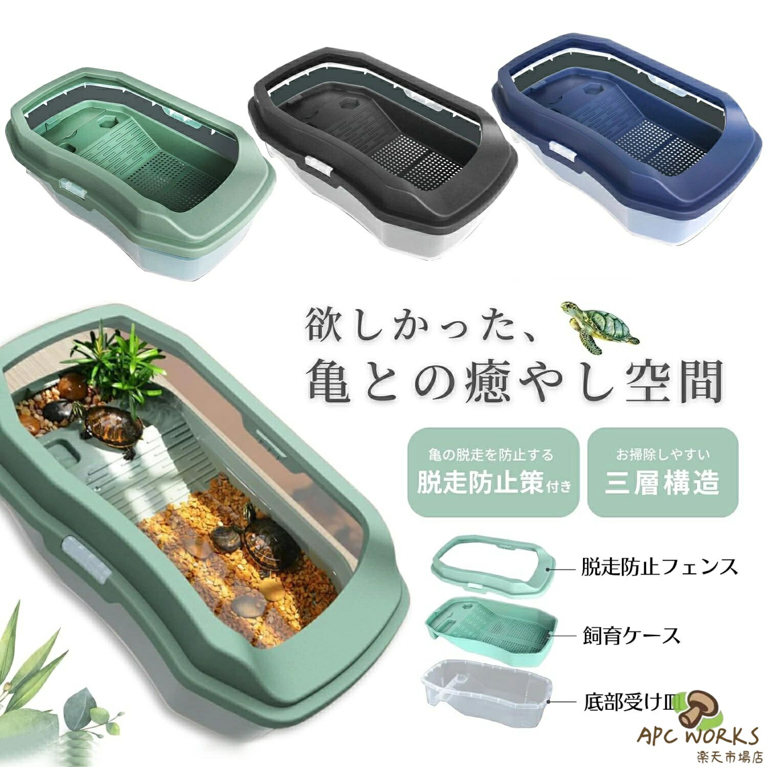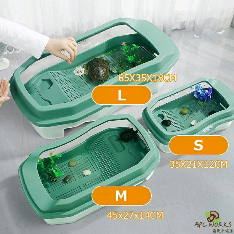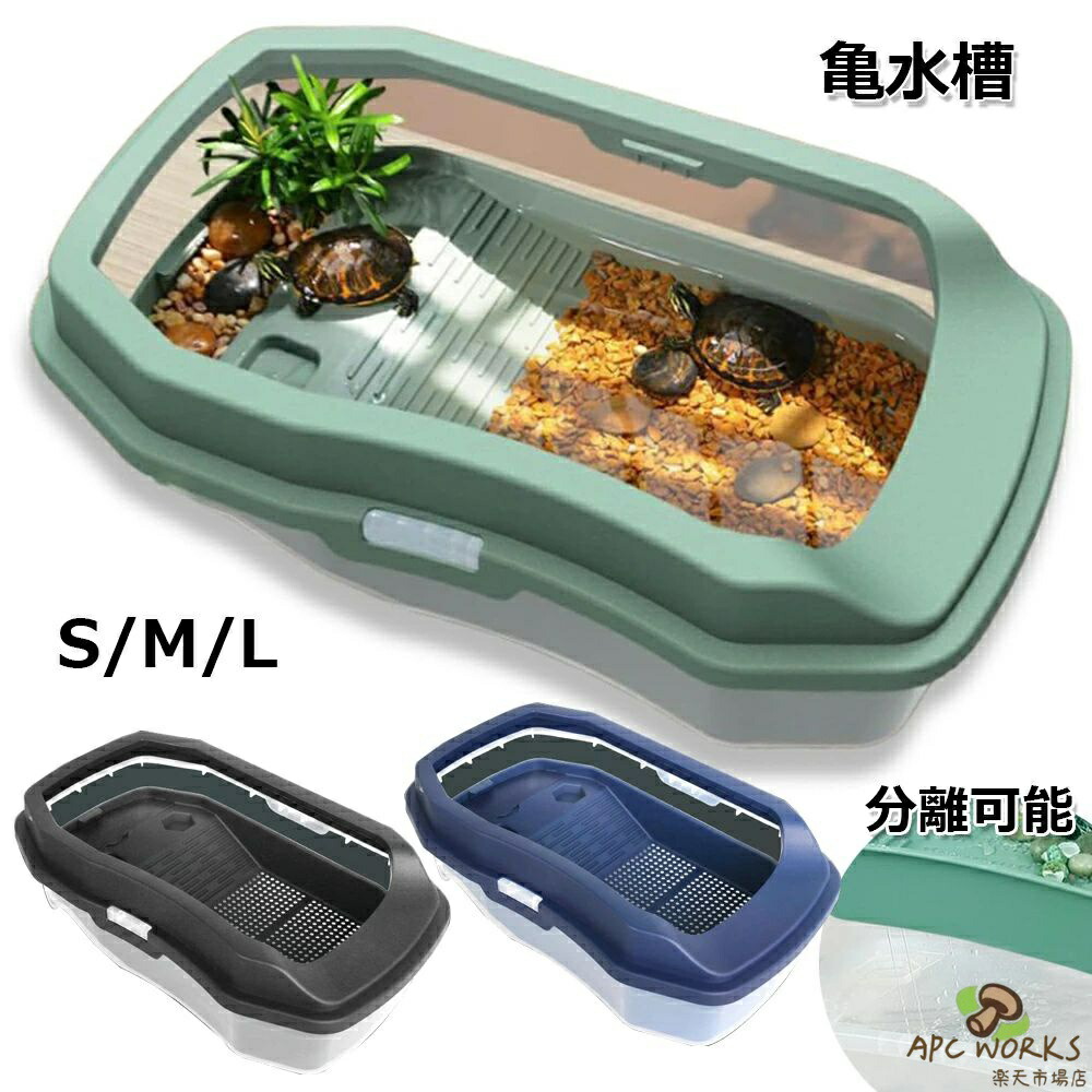 亀水槽 爬虫類 カメの水族館 カメ用水 グリーン ブラック ブルー S:35×21×12cm M:45×27×14cm L:65×35×18cm