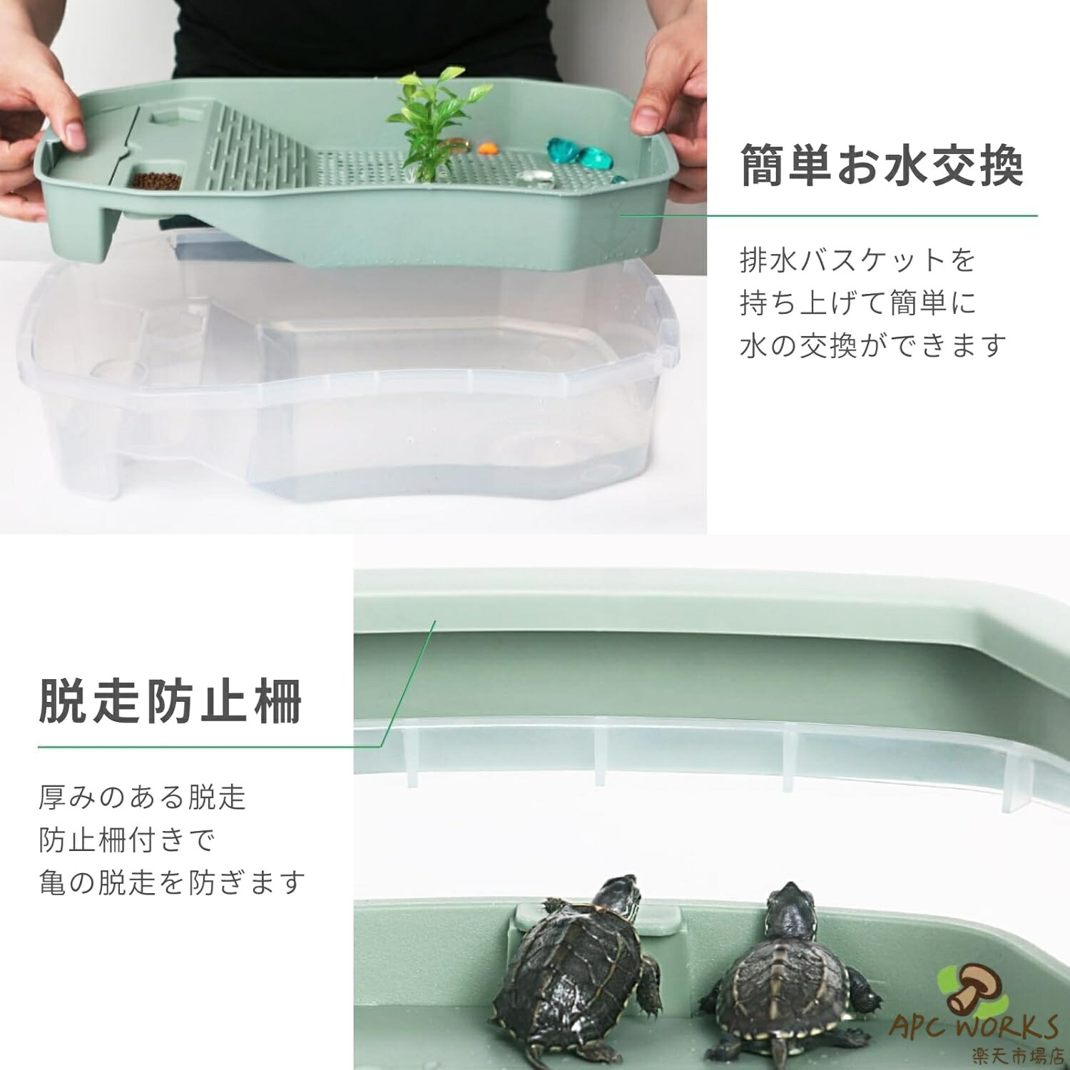 亀水槽 爬虫類 カメの水族館 カメ用水槽 亀の水槽 飼育ケース 飼育区域あり 大きい ボックス カメ槽 滑り止め 休憩プラットフォーム 脱出防止 亀の楽園 両生類用品 日向ぼっこ台 ミドリガメ 水族館