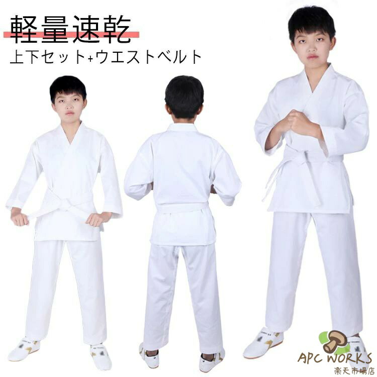 空手着 空手 初心者 空手道着 上下+帯 大人 白帯 ジュニア セット 3点セット 100-180cm 空手衣 入門者向け 男女兼用 空手スーツ 子ども 授業用 練習用 合気道 柔道授業 道着