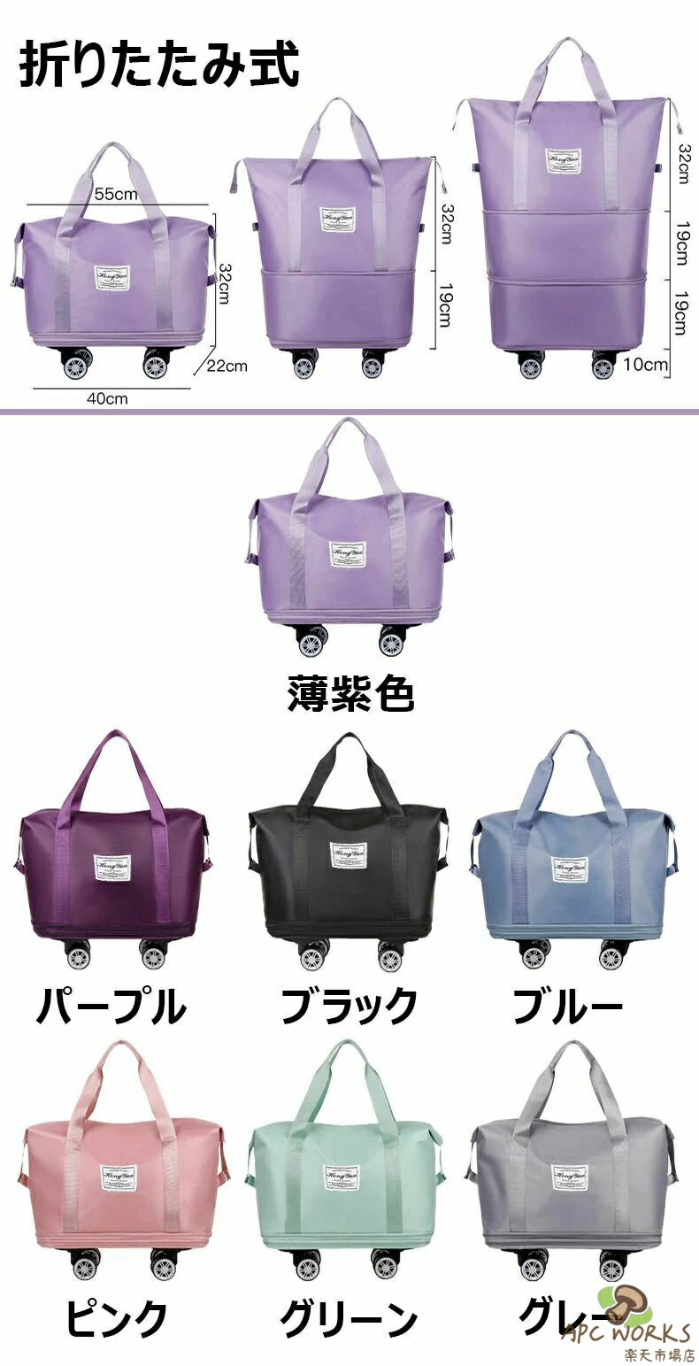 バッグ キャスター付き 軽量 大容量バ バッグ 男女兼用バッグ ボストンバッグ 豊富な品揃え パープル ブラック ブルー ピンク グリーン グレー 薄紫色