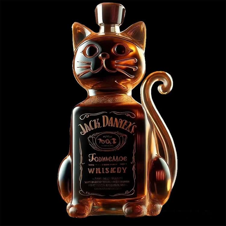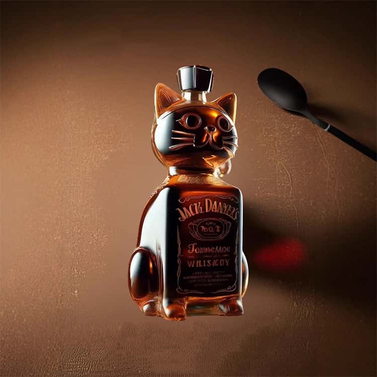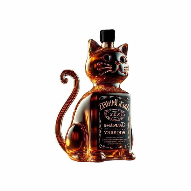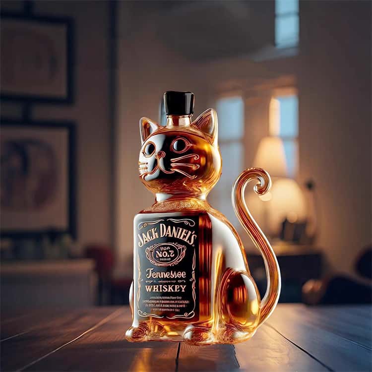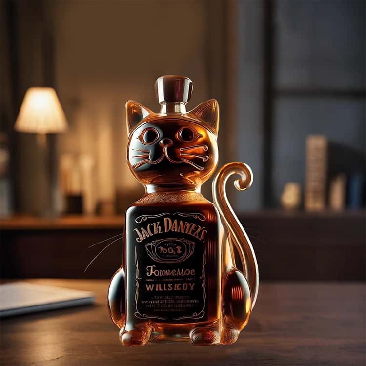 可愛い猫デザインのウィスキーガラスボトル。