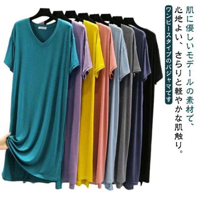 ワンピース 部屋着 メンズ モダール スリーパー 男女兼用 レディース 夏 春 パジャマ 男性 女性 ネグリジェ ゆったり 肌に優しい Vネック 薄手 半袖 寝間着