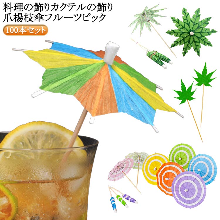 飲食店 料理の飾り フルーツピック 爪楊枝 八角 セット 傘 カクテルピック 料理 和風タイプ カクテル飾り 100本セット カクテル カクテルの飾り ピック 飾り 彩り カラフル パーティーピック