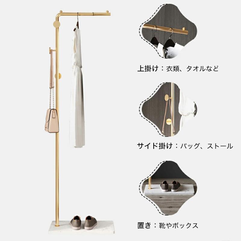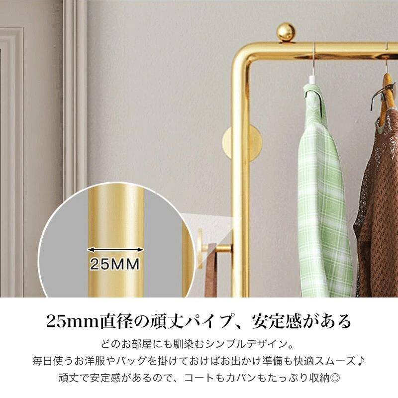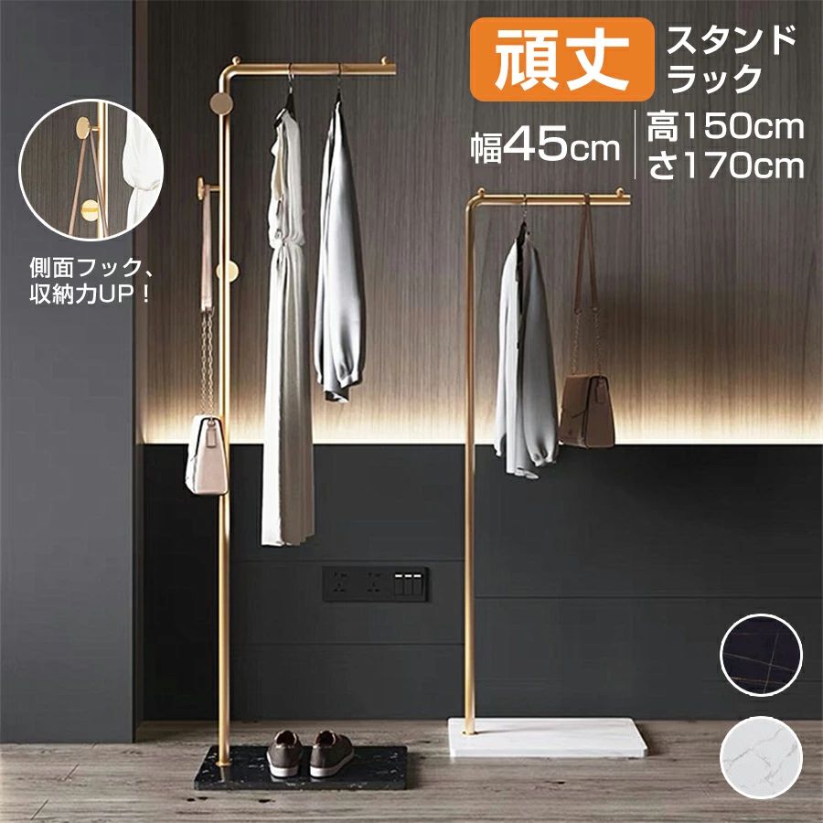 ハンガーラック スリム おしゃれ 頑丈 ホワイト ブラック ゴールド 側面フック付き 側面フックなし