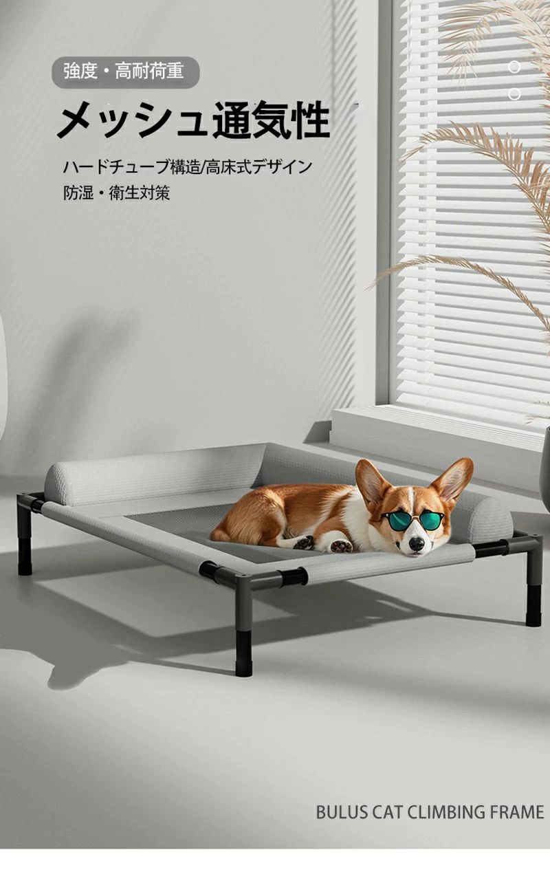 ペットコット 高架式ペットベッド 犬用 猫用 ドッグコット 洗濯可能な通気性メッシュ付き 小型犬 中型犬 メッシュベッド高耐 屋内外兼用