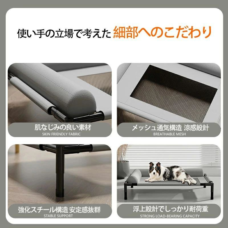 【超簡単お手入れ】 各脚には滑り止めゴムパッド付きで安定性抜群!汚れやペットの毛は水で流すだけ。乾性があり、濡れたタオルで拭くだけでも清潔に保てます。屋内/庭/キャンプ/旅行先でも愛犬の快適なベッド空間を実現。