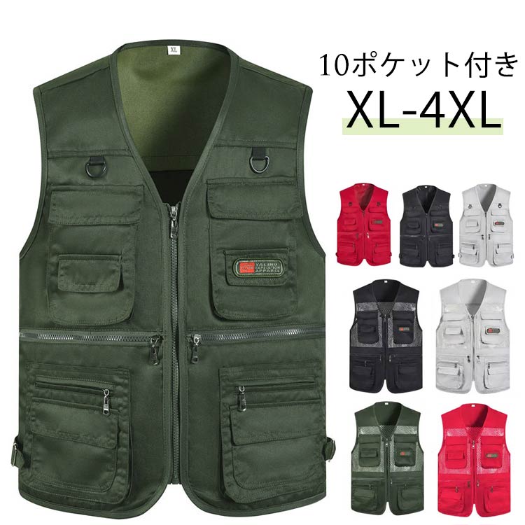 お釣りベスト 10ポケット フィッシン メンズファッション 早い者勝ち ブラック ライトグレー グリーン レッド ブラック(メッシュ) ライトグレー(メッシュ) グリーン(メッシュ) レッド(メッシュ) XL 2XL 3XL 4XL