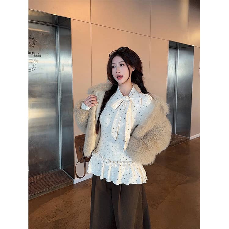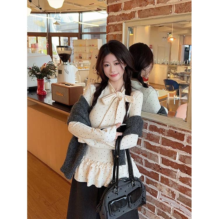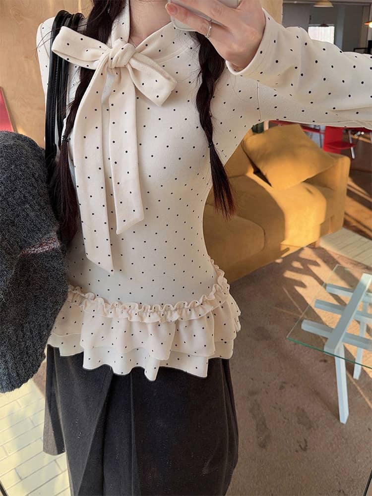 上品なドット柄に、可愛らしいリボンディテールをプラス。