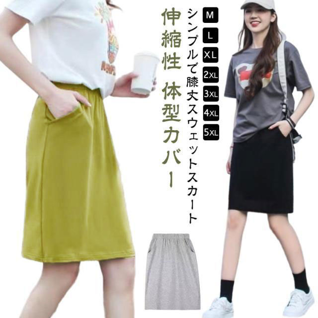 きれいめ レディース ハイウエスト 膝丈 スウェットスカート Aライン スカート カジュアル 無地 ウエストゴム ボトムス ミディアムスカート 夏 大人 体型カバー スポーツ