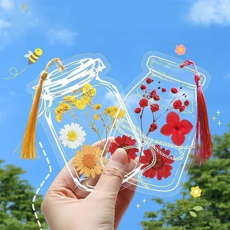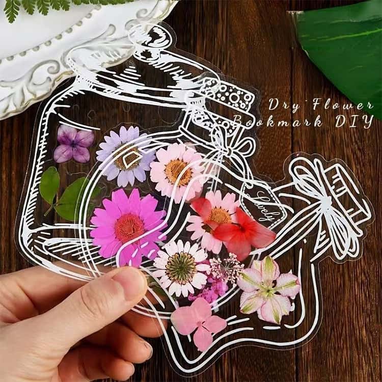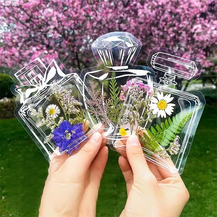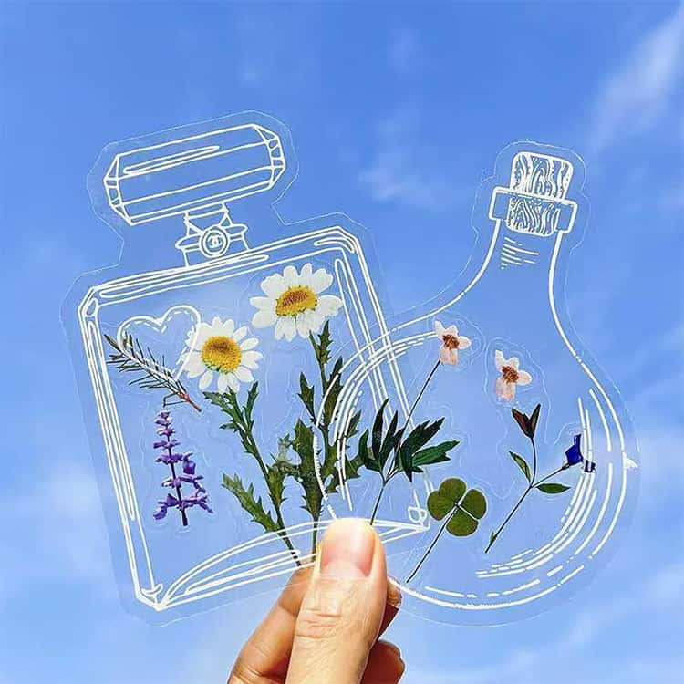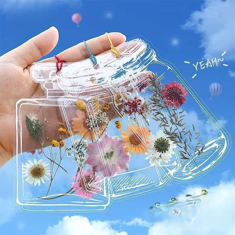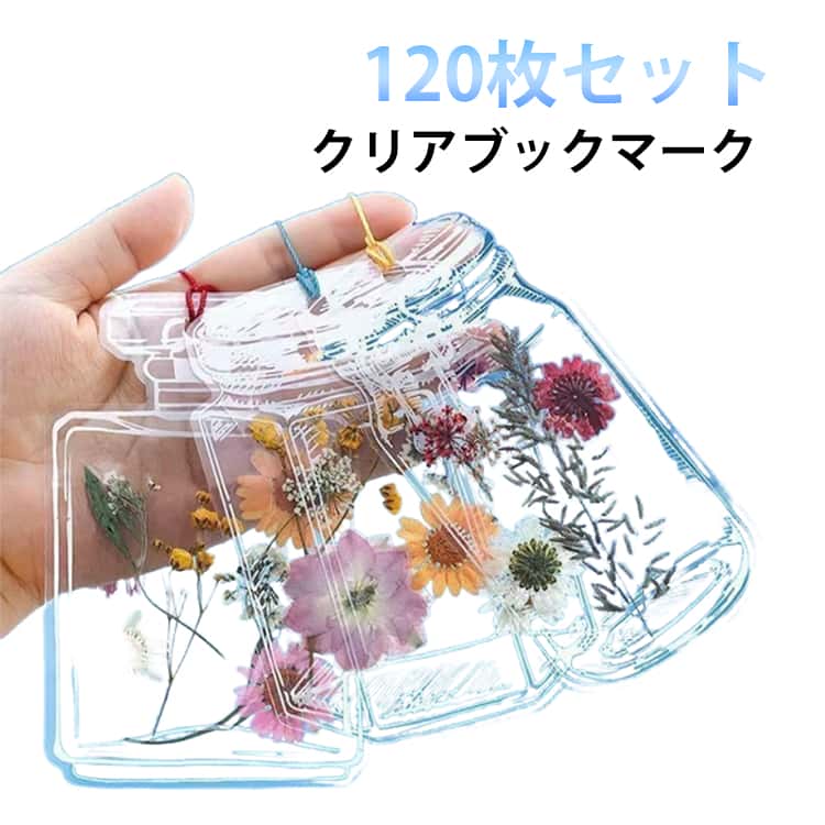 120枚セット ドライフラワー シール しおり 押し花 クリア ブックマーク 透明 手帳 植物標本 ボトル 花瓶 ガラス瓶 ステッカー 香水瓶 手芸 デコ クリアシール