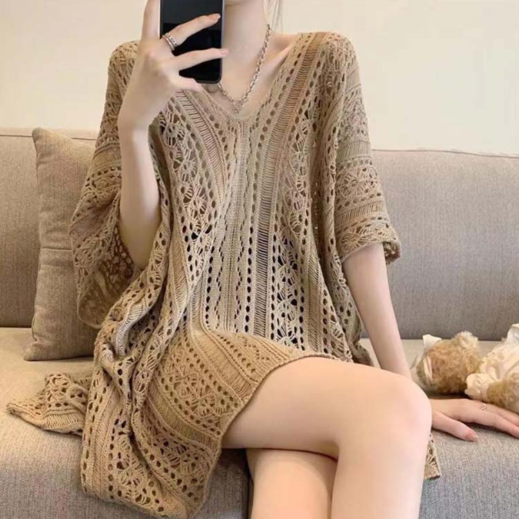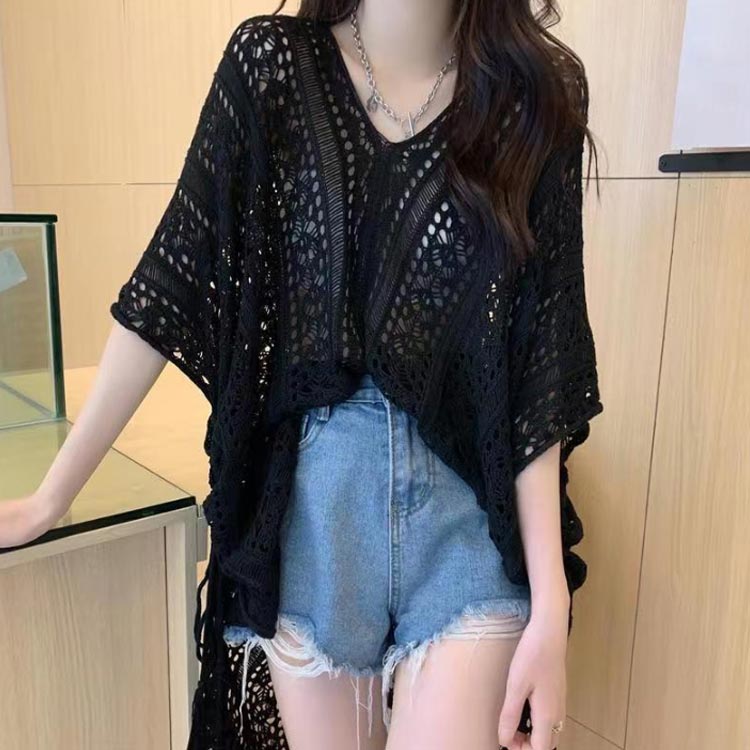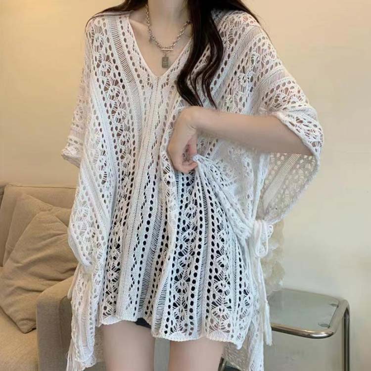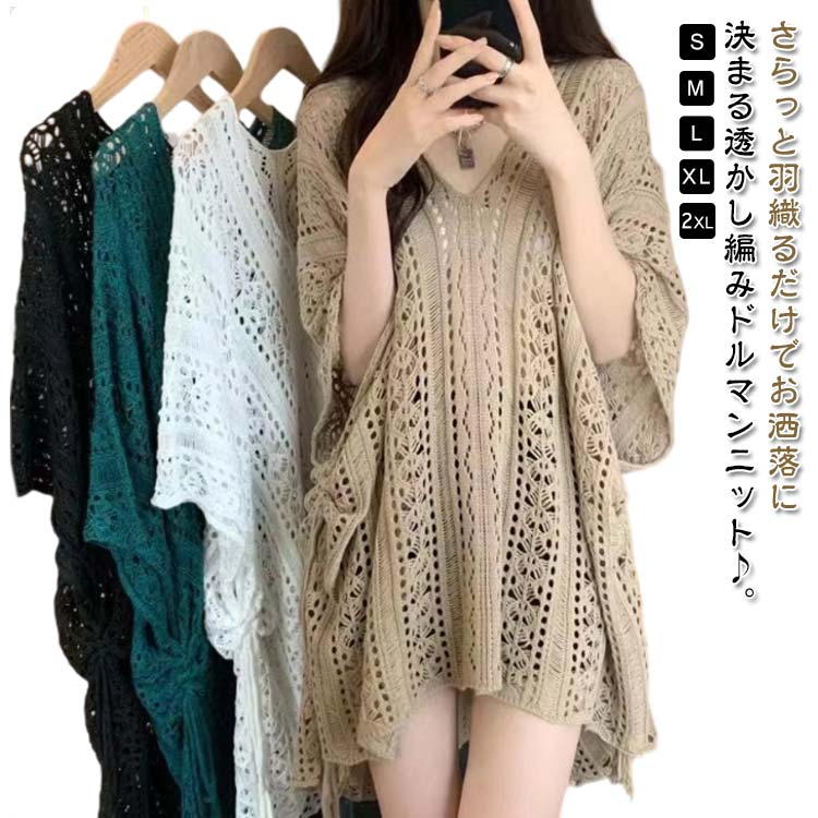 S-2XL!さらっと羽織るだけでお洒落に決まる透かし編みドルマンニット♪。