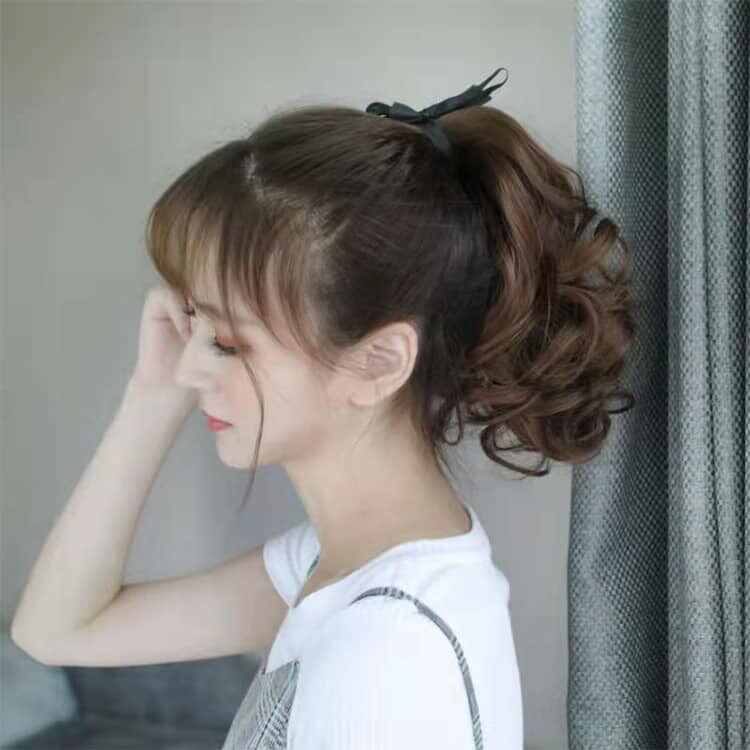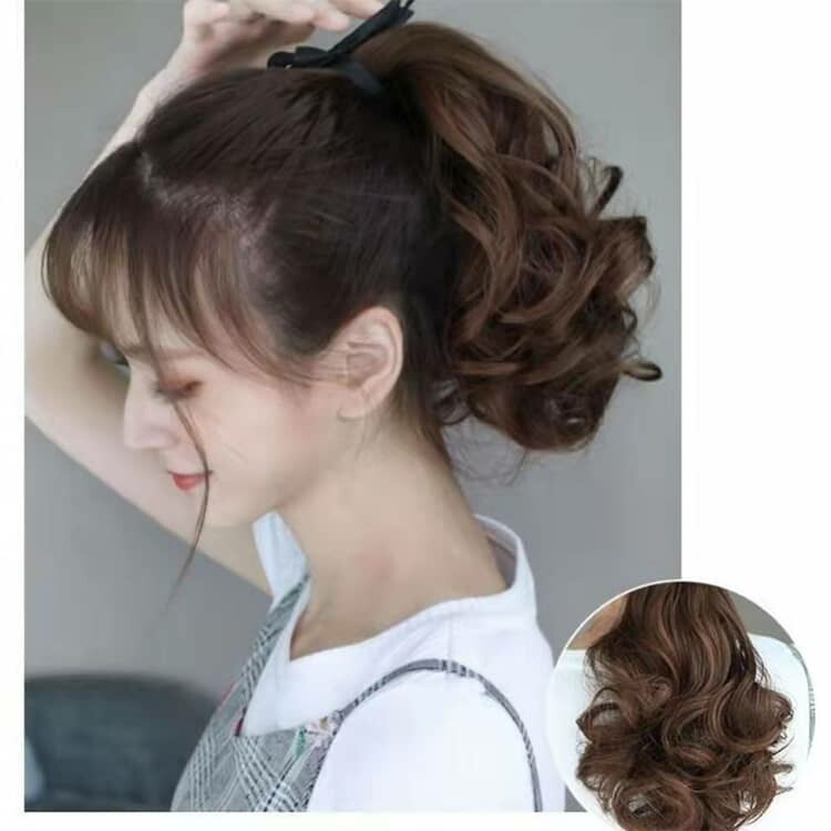 28cm カール ポニーテールウィッグ エクステ つけ毛 巻き髪 ヘアウィッグ ポイントウィッグ コスプレウィッグ パーティー ブラウンブラック ブラック ダークブラウン 結婚式
